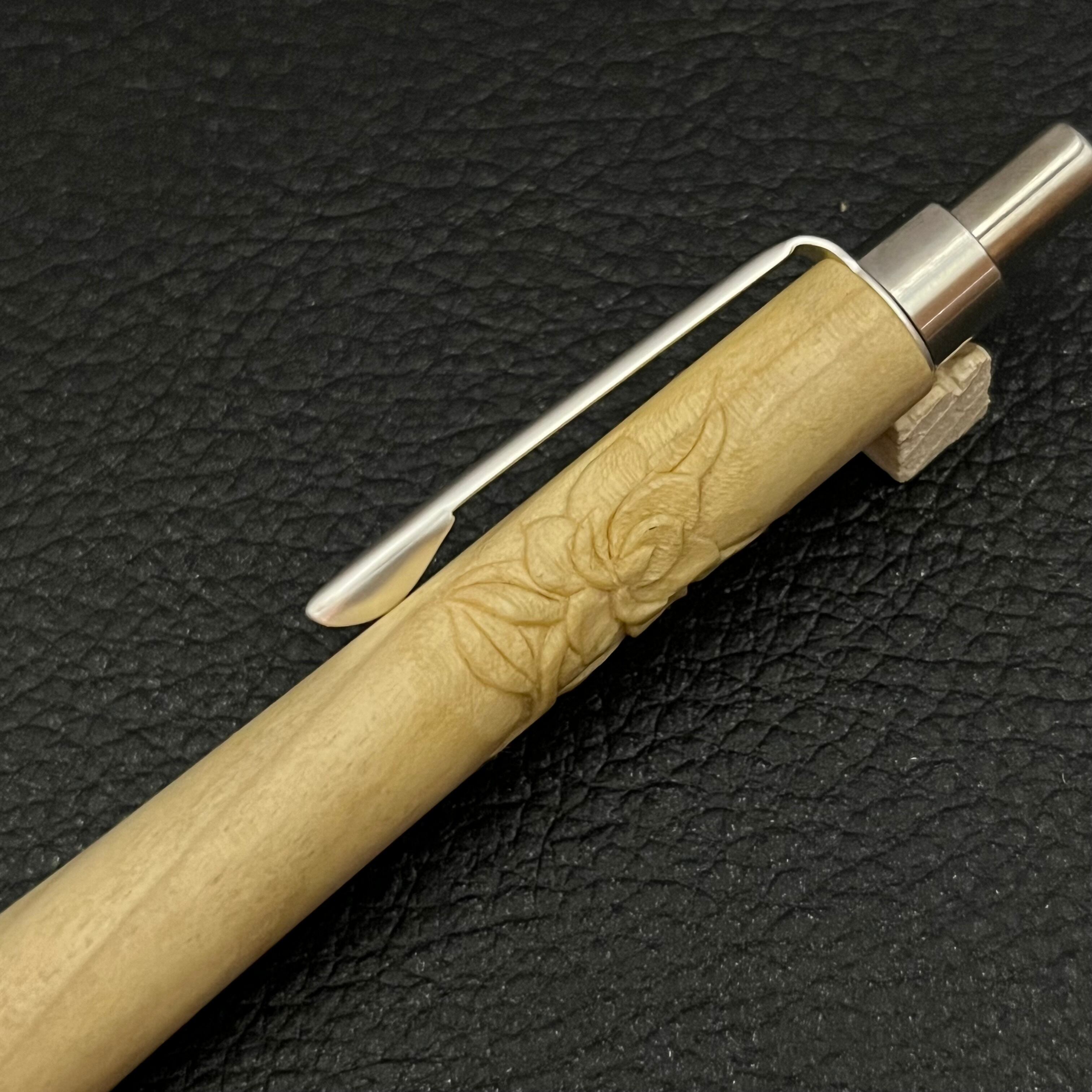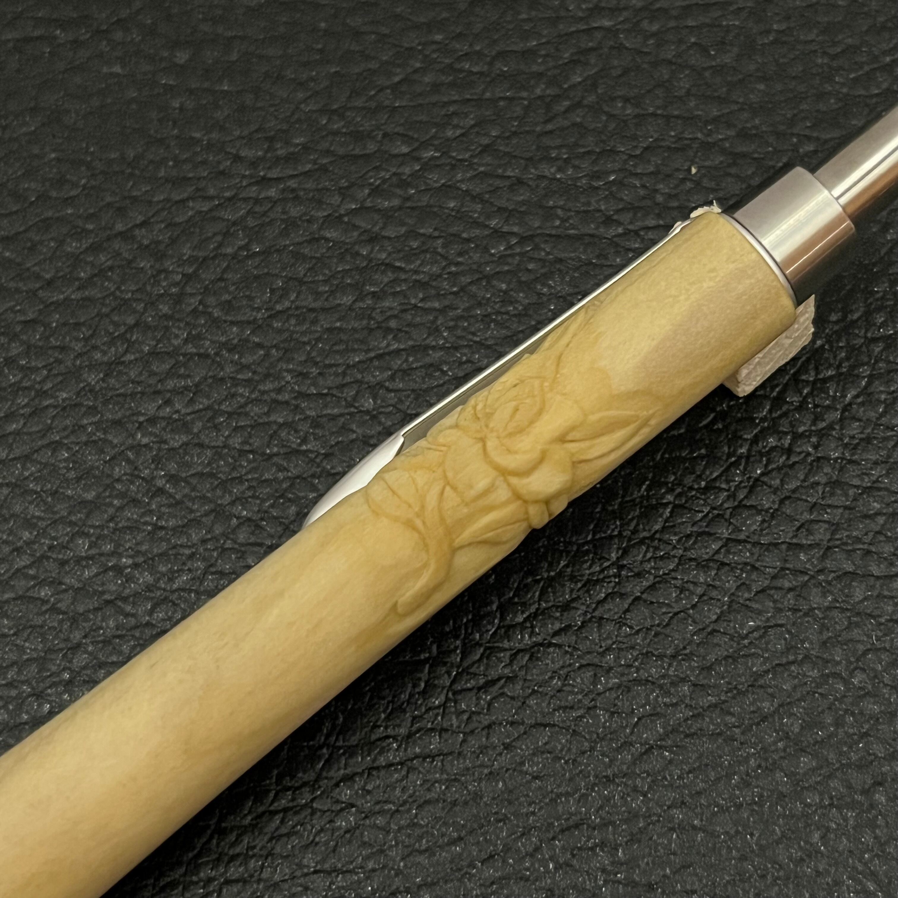 オリジナルペン金具は大阪に在る金属精密加工会社の職人さんが100分の1㎜単位の加工精度で制作されています。口金・上スリーブ・ノックカバーは高級ステンレスの削り出しです。