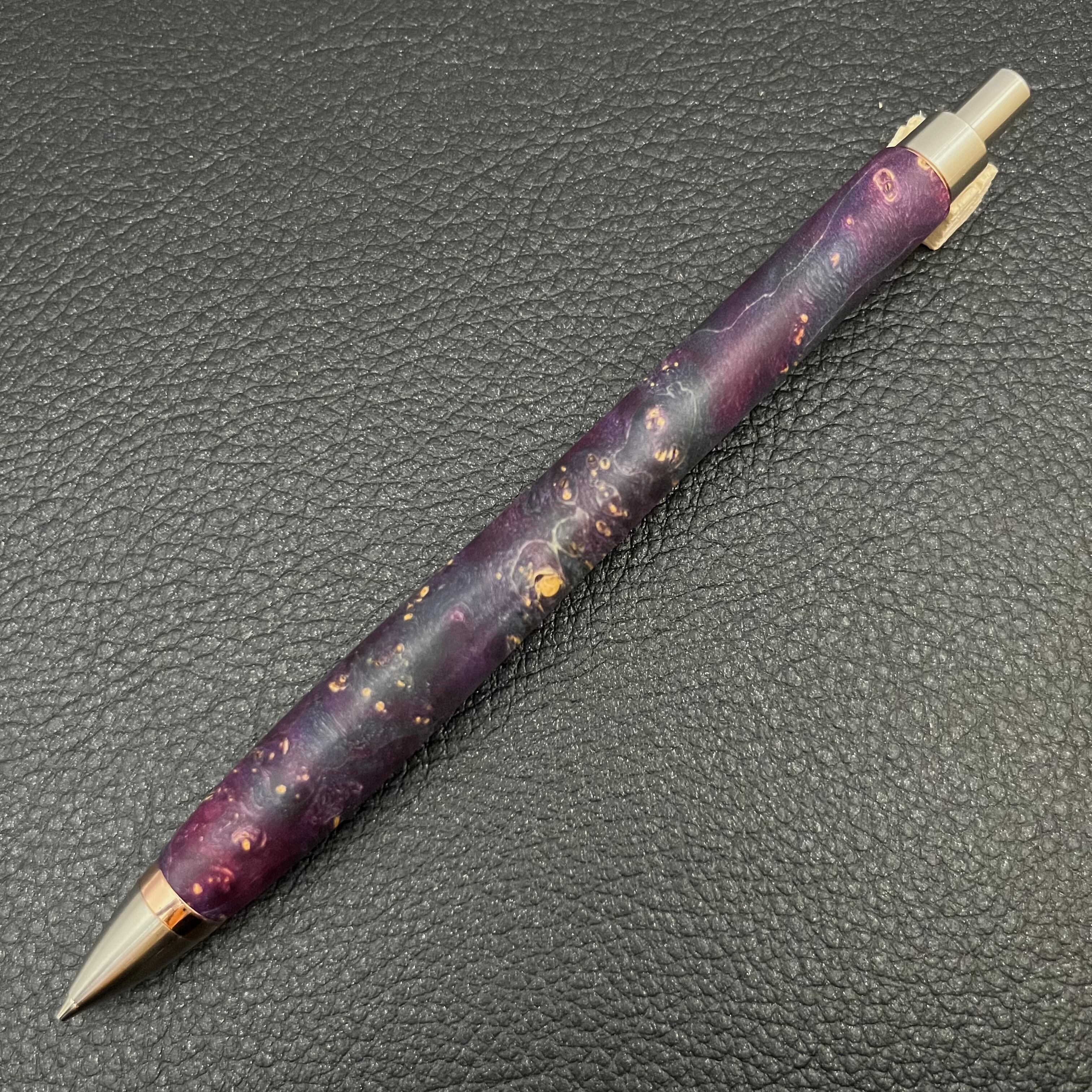 ※トネリコバノカエデのバール(こぶ)に染料と樹脂を浸み込ませて安定化させた木材