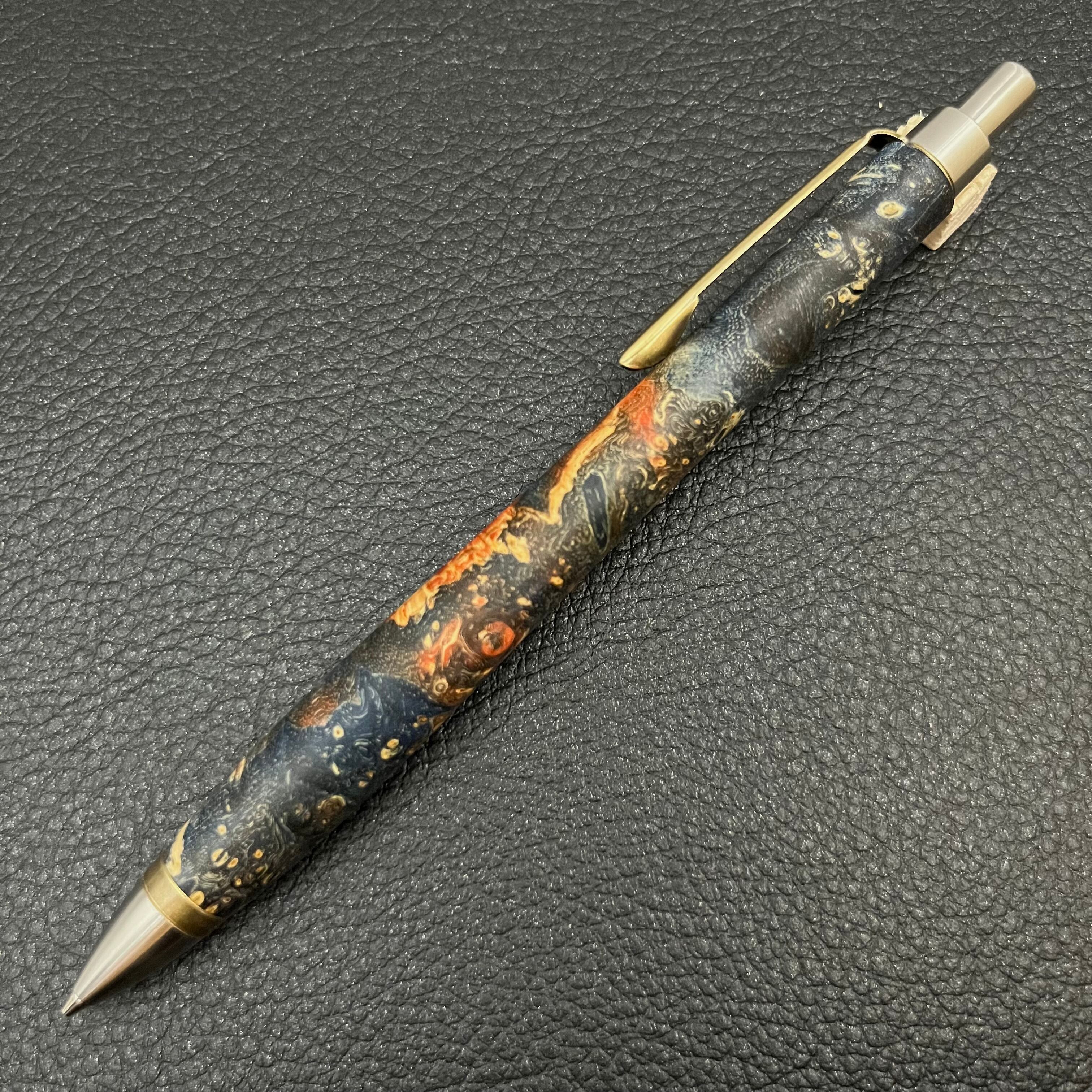 ※トネリコバノカエデのバール(こぶ)に染料と樹脂を浸み込ませて安定化させた木材