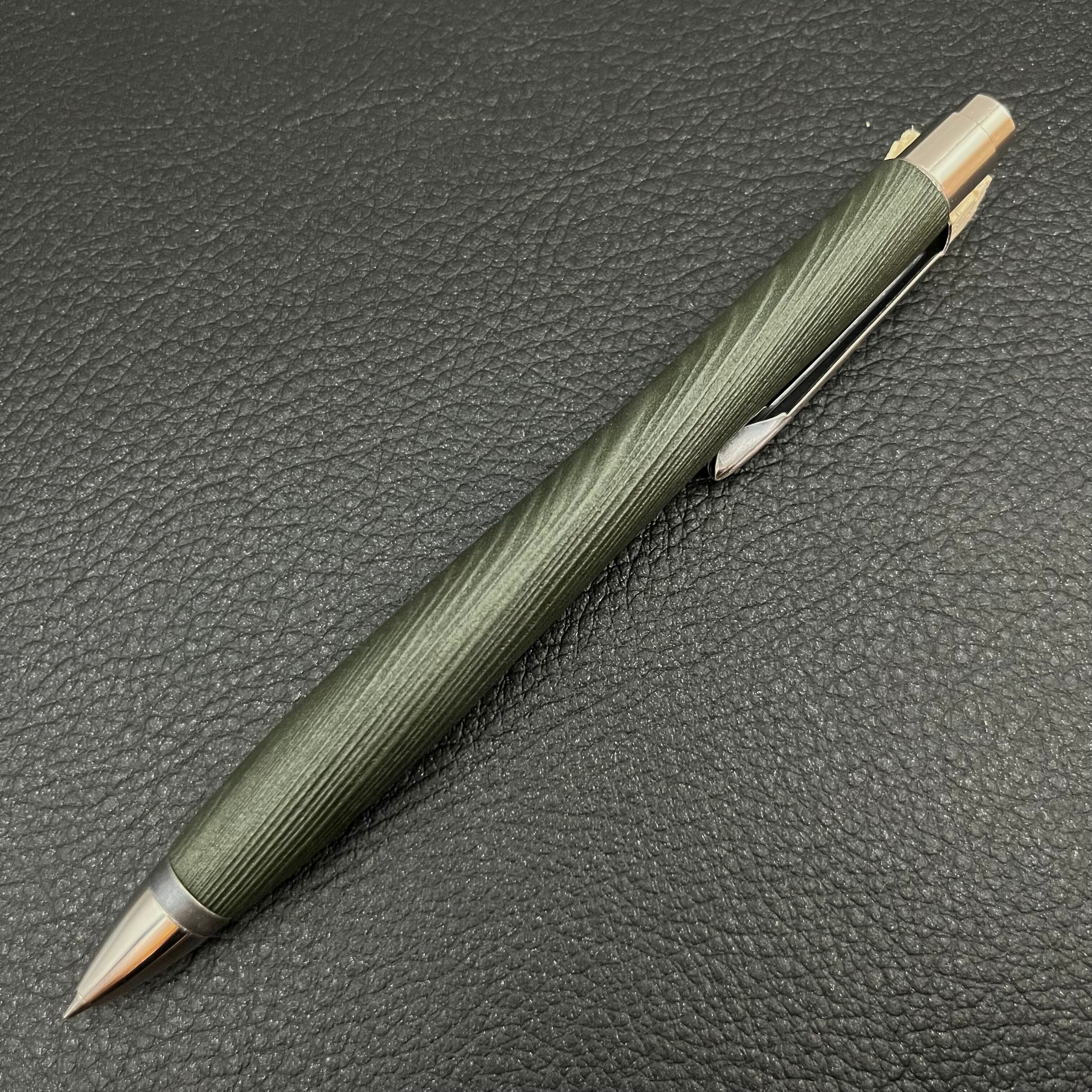 ボールペンのノックシステムは、ドイツ最高のクリックメカニズムを採用してあります。このメカニズムはユニークな機構のため、クリックしたときのカチカチ音が静かで、どんな場所でも気兼ねなく使うことができます。滑らかに動くこのプッシュ感覚を一度味わうと他には戻れなくなってしまうほどの魅力があります。 100分の1単位の加工精度で削り出されたペン先は、軸ブレも全くありません。