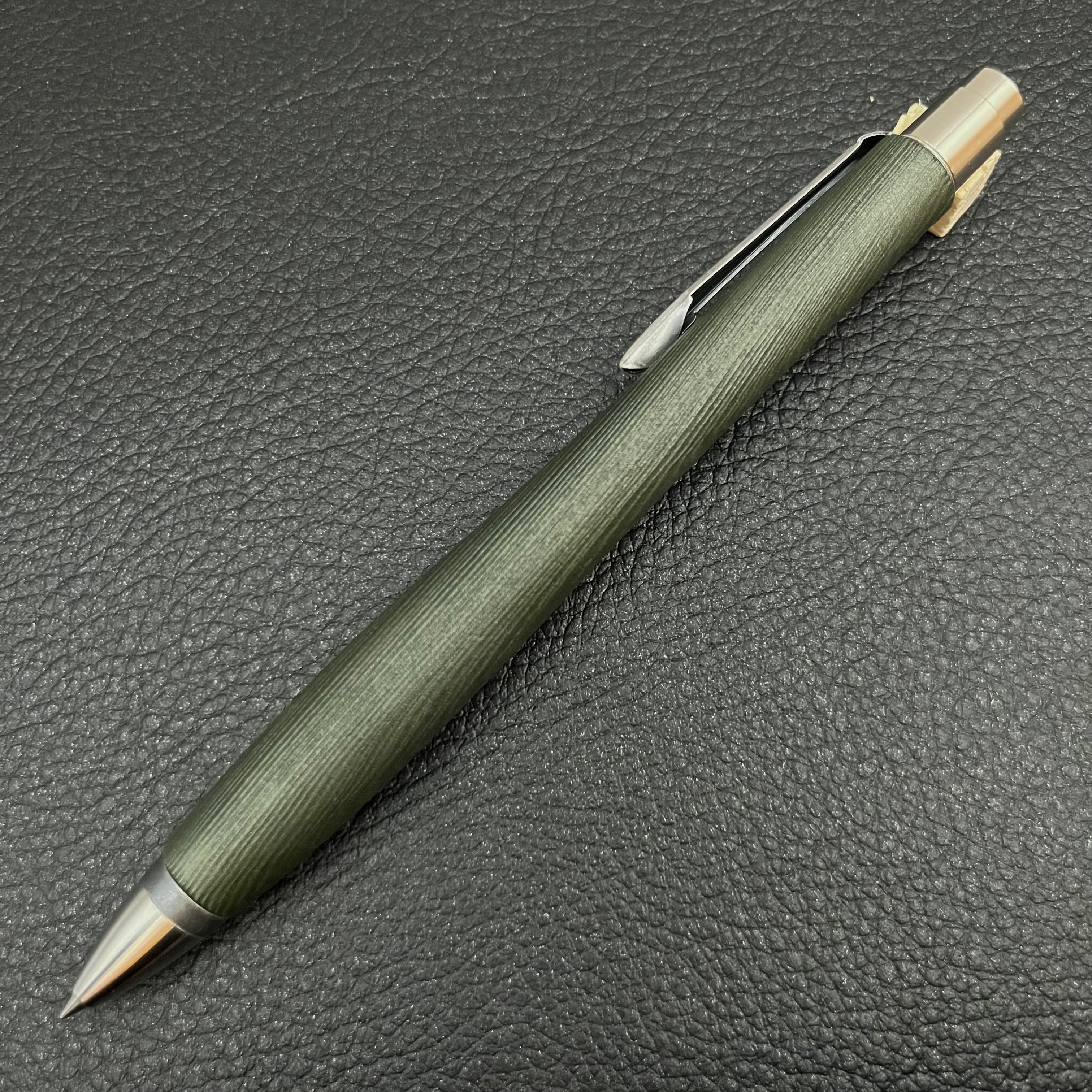 ボールペンのノックシステムは、ドイツ最高のクリックメカニズムを採用してあります。このメカニズムはユニークな機構のため、クリックしたときのカチカチ音が静かで、どんな場所でも気兼ねなく使うことができます。滑らかに動くこのプッシュ感覚を一度味わうと他には戻れなくなってしまうほどの魅力があります。 100分の1単位の加工精度で削り出されたペン先は、軸ブレも全くありません。