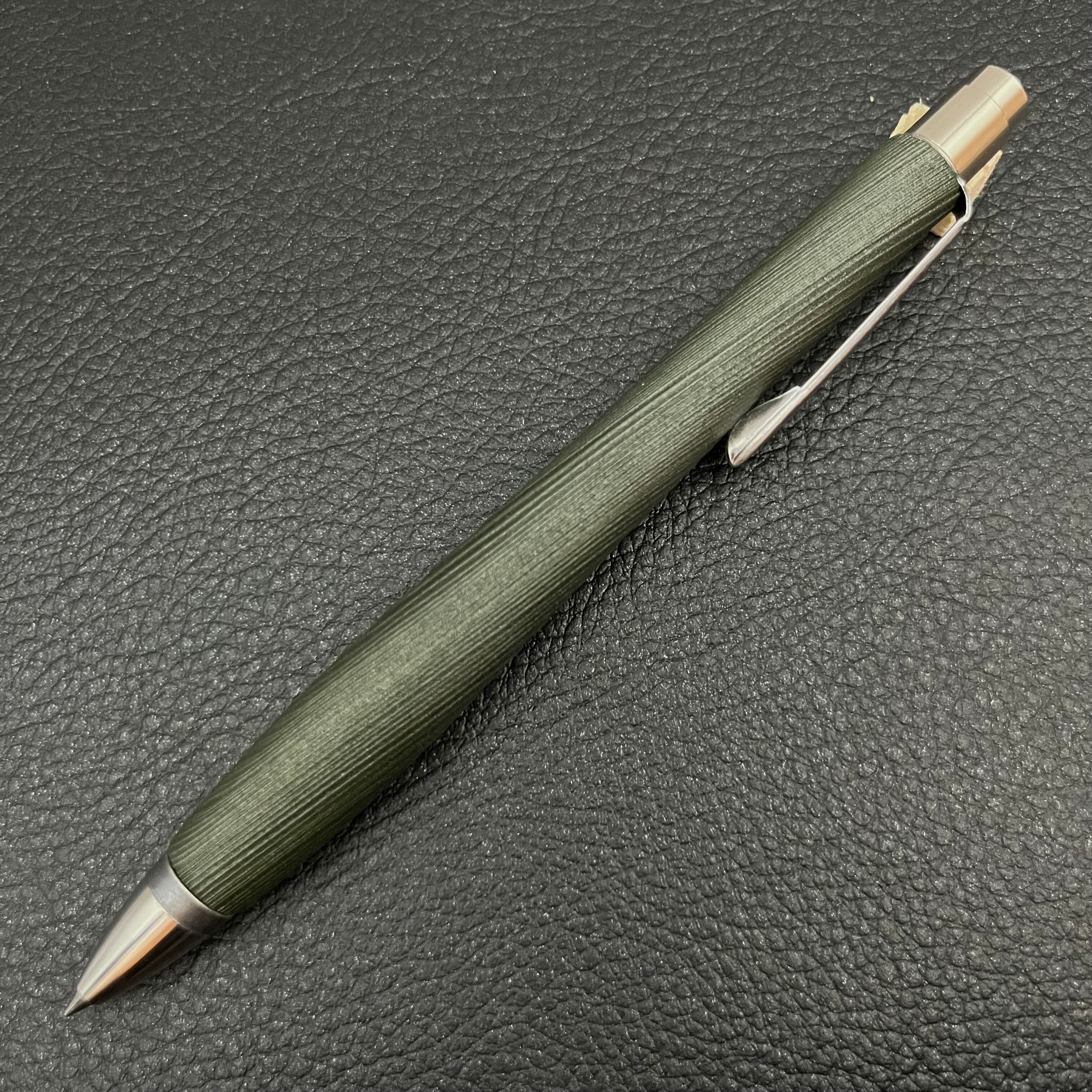 ボールペンのノックシステムは、ドイツ最高のクリックメカニズムを採用してあります。このメカニズムはユニークな機構のため、クリックしたときのカチカチ音が静かで、どんな場所でも気兼ねなく使うことができます。滑らかに動くこのプッシュ感覚を一度味わうと他には戻れなくなってしまうほどの魅力があります。 100分の1単位の加工精度で削り出されたペン先は、軸ブレも全くありません。