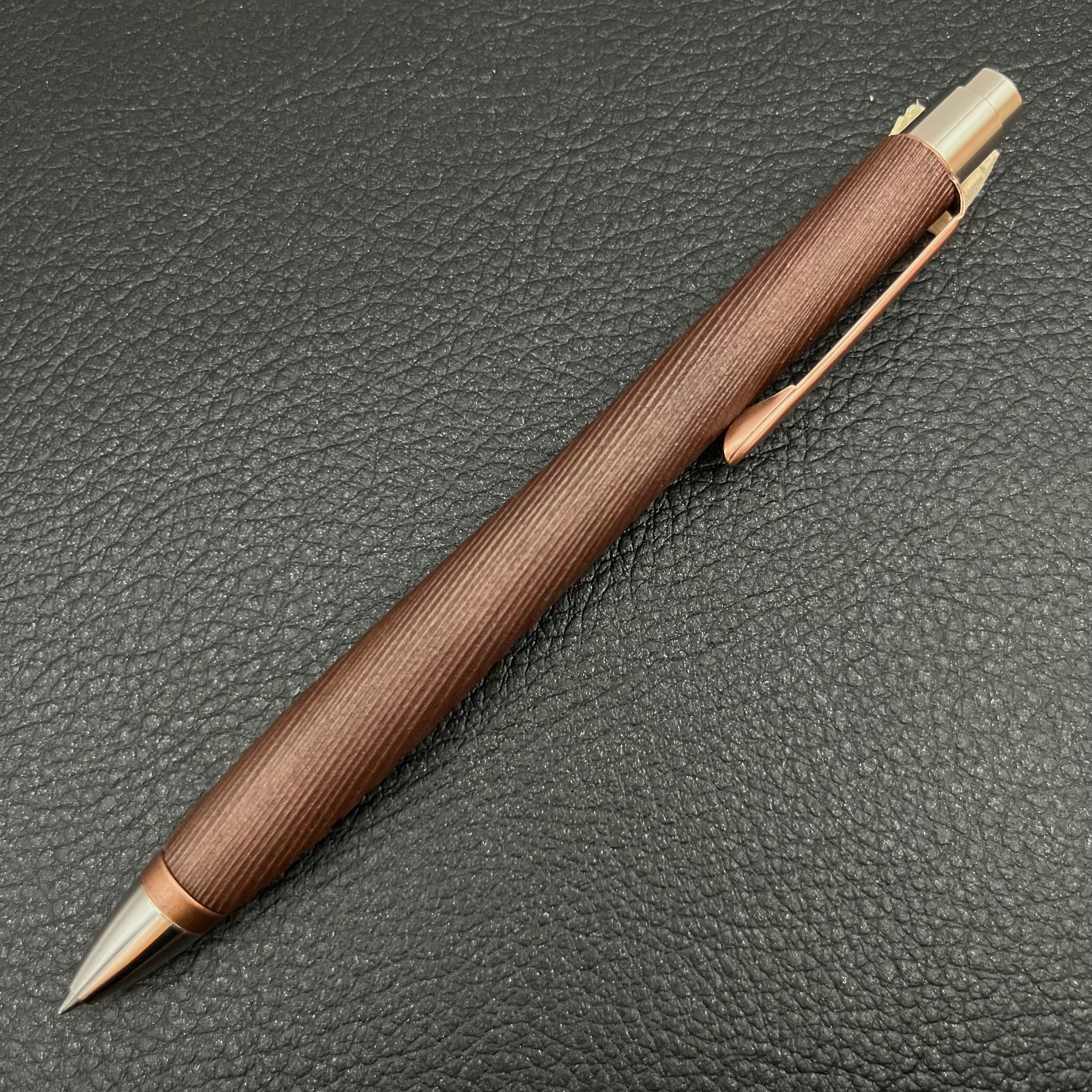 ボールペンのノックシステムは、ドイツ最高のクリックメカニズムを採用してあります。このメカニズムはユニークな機構のため、クリックしたときのカチカチ音が静かで、どんな場所でも気兼ねなく使うことができます。滑らかに動くこのプッシュ感覚を一度味わうと他には戻れなくなってしまうほどの魅力があります。 100分の1単位の加工精度で削り出されたペン先は、軸ブレも全くありません。
