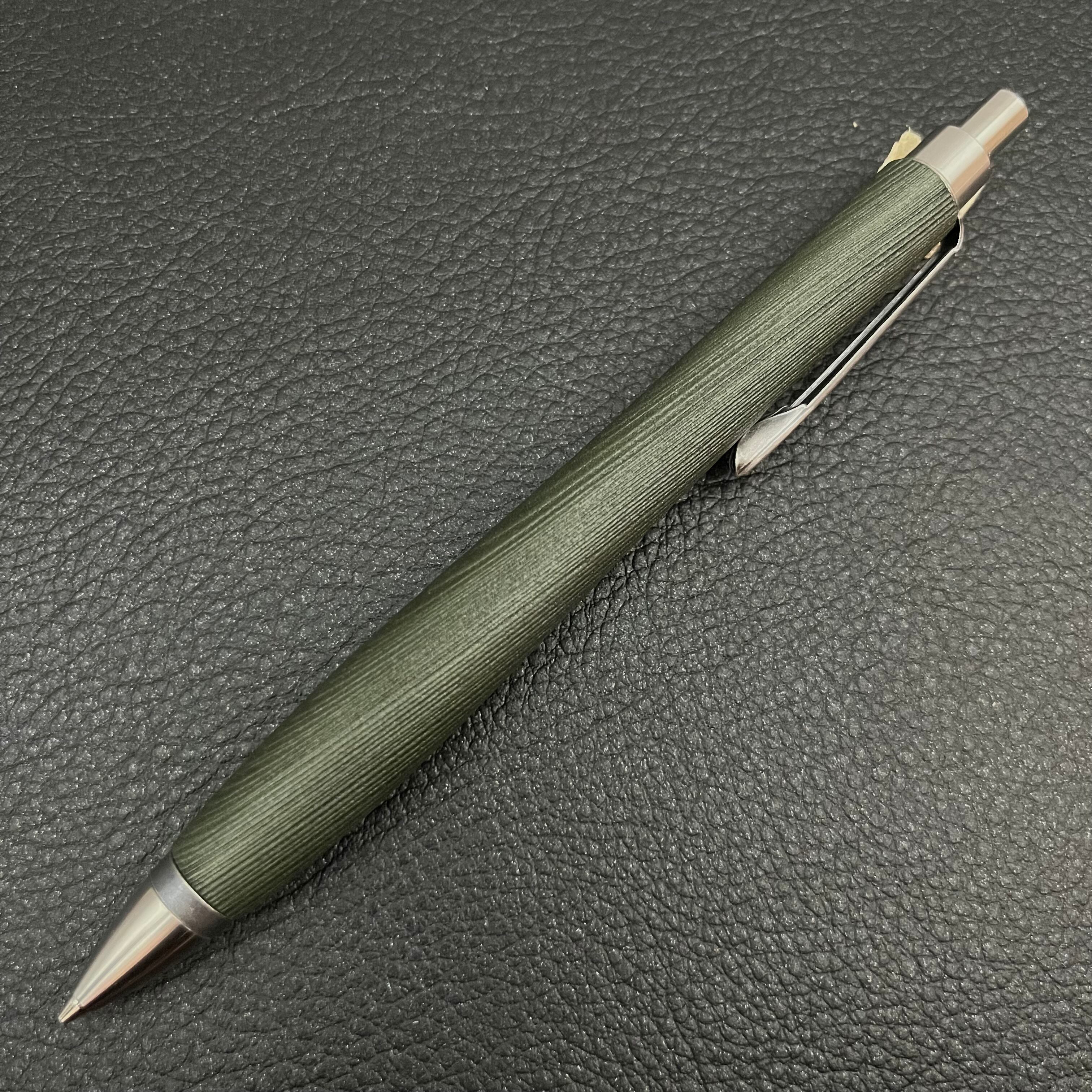オリジナルペン金具は、大阪に在る金属精密加工会社の職人さんが100分の1㎜単位の加工精度で制作されています。口金・上スリーブ・ノックカバーは高級ステンレス削り出しです。