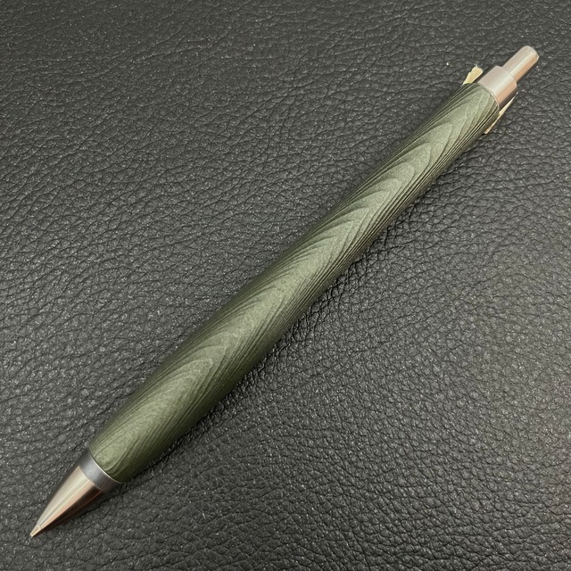オリジナルペン金具は、大阪に在る金属精密加工会社の職人さんが100分の1㎜単位の加工精度で制作されています。口金・上スリーブ・ノックカバーは高級ステンレス削り出しです。