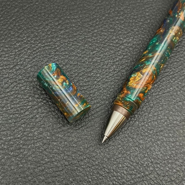 ①シンプルなデザインとキャップ式構造で樹脂の美しさを最大限引き出しています。