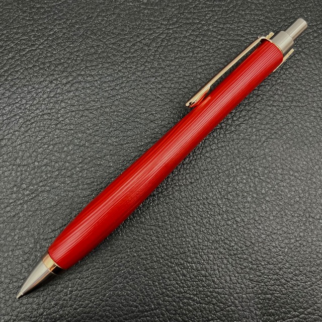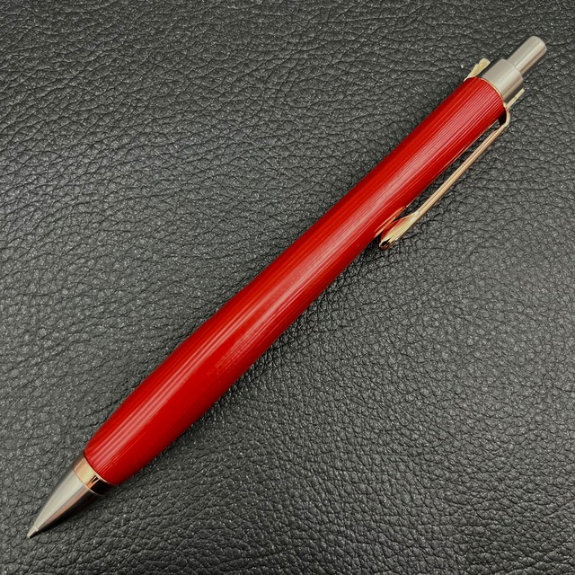 オリジナルペン金具は、大阪に在る金属精密加工会社の職人さんが100分の1㎜単位の加工精度で制作されています。口金・上スリーブ・ノックカバーは高級ステンレス削り出しです。