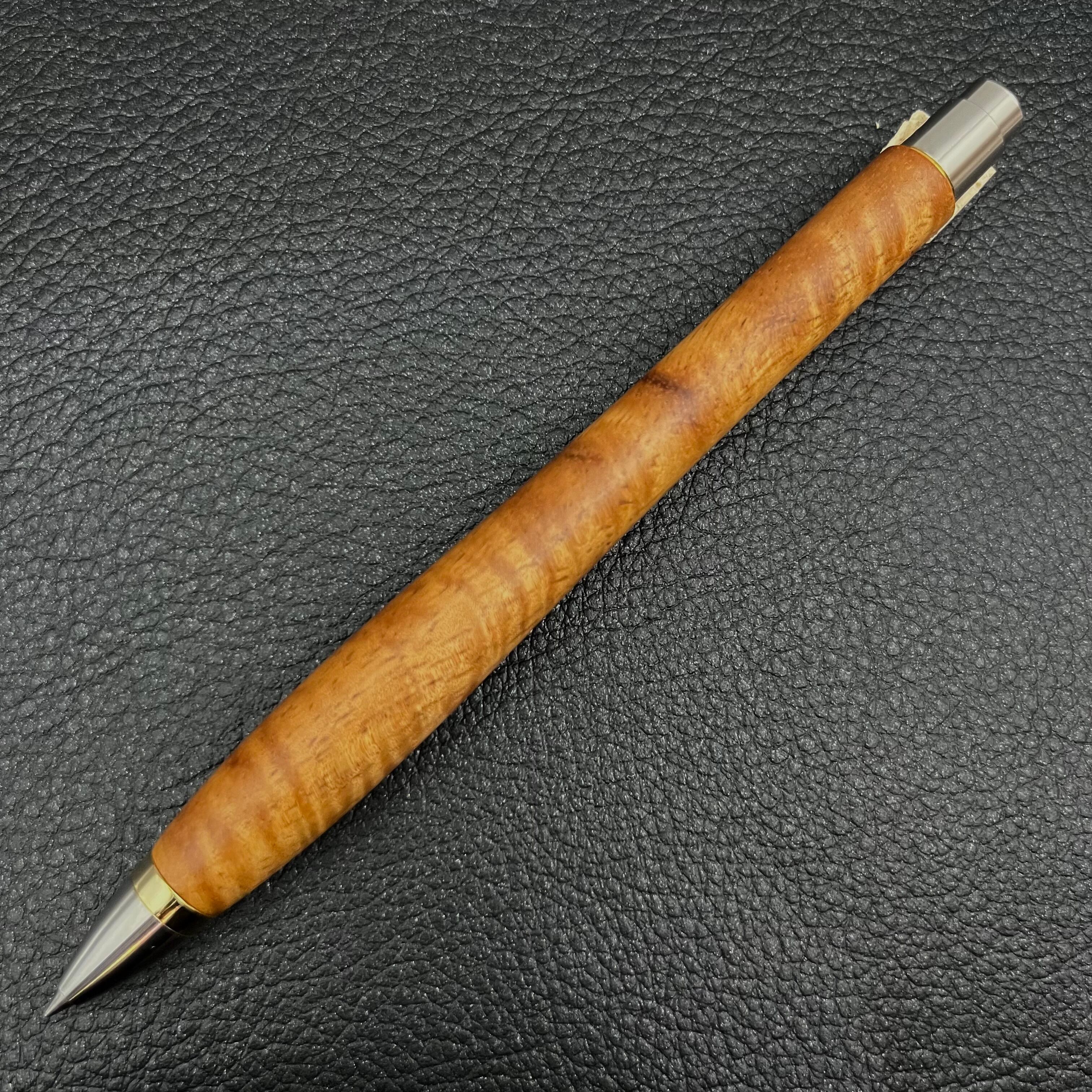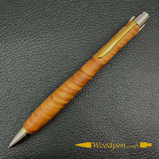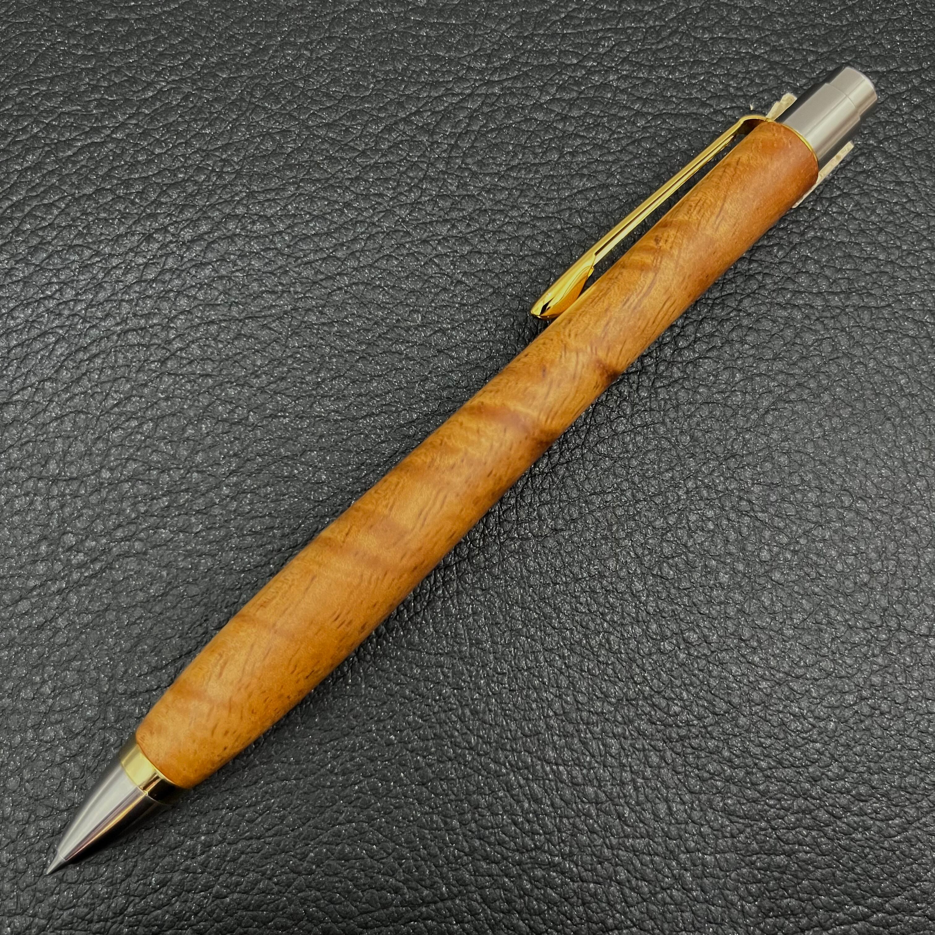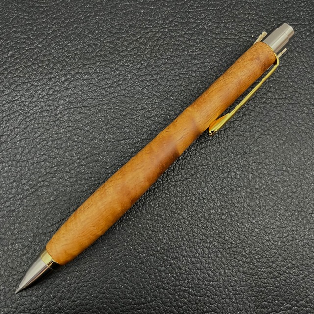 ボールペンのノックシステムは、ドイツ最高のクリックメカニズムを採用してあります。このメカニズムはユニークな機構のため、クリックしたときのカチカチ音が静かで、どんな場所でも気兼ねなく使うことができます。滑らかに動くこのプッシュ感覚を一度味わうと他には戻れなくなってしまうほどの魅力があります。 100分の1単位の加工精度で削り出されたペン先は、軸ブレも全くありません。