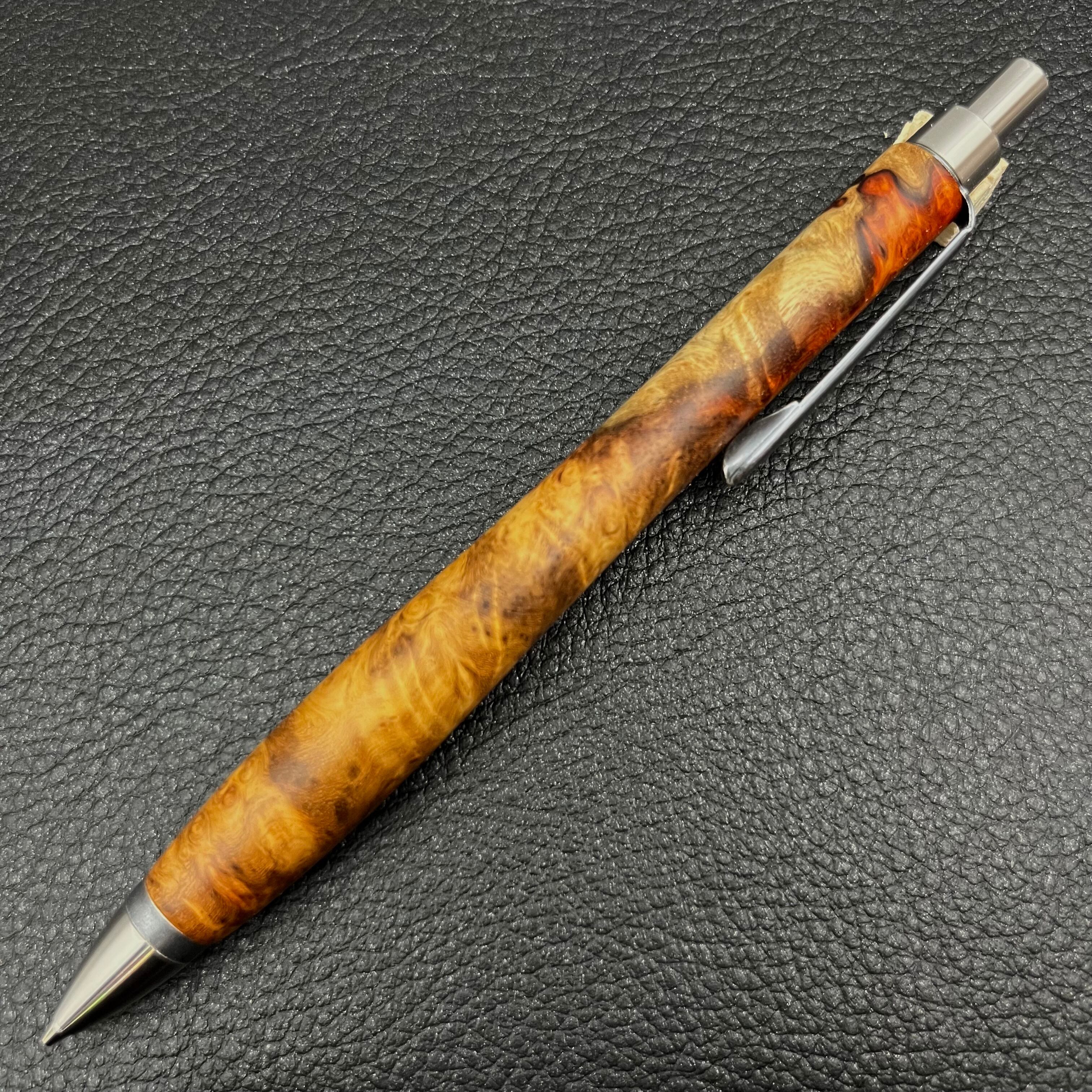 ペンシルは軸ブレが起こりにくい固定式口金を採用し、木の表情を最大限に楽しめる木軸の長さと、書き心地にこだわったバランスで金具を設計してあります。