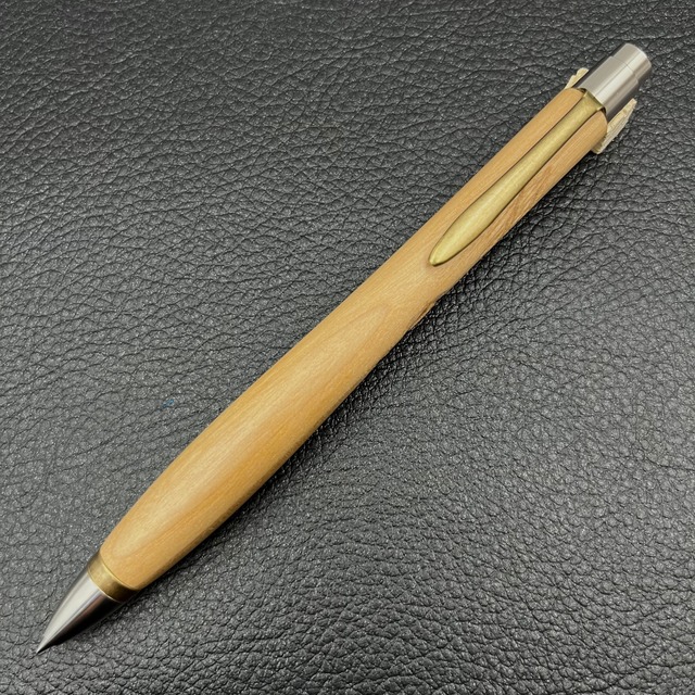 ボールペンのノックシステムは、ドイツ最高のクリックメカニズムを採用してあります。このメカニズムはユニークな機構のため、クリックしたときのカチカチ音が静かで、どんな場所でも気兼ねなく使うことができます。滑らかに動くこのプッシュ感覚を一度味わうと他には戻れなくなってしまうほどの魅力があります。 100分の1単位の加工精度で削り出されたペン先は、軸ブレも全くありません。
