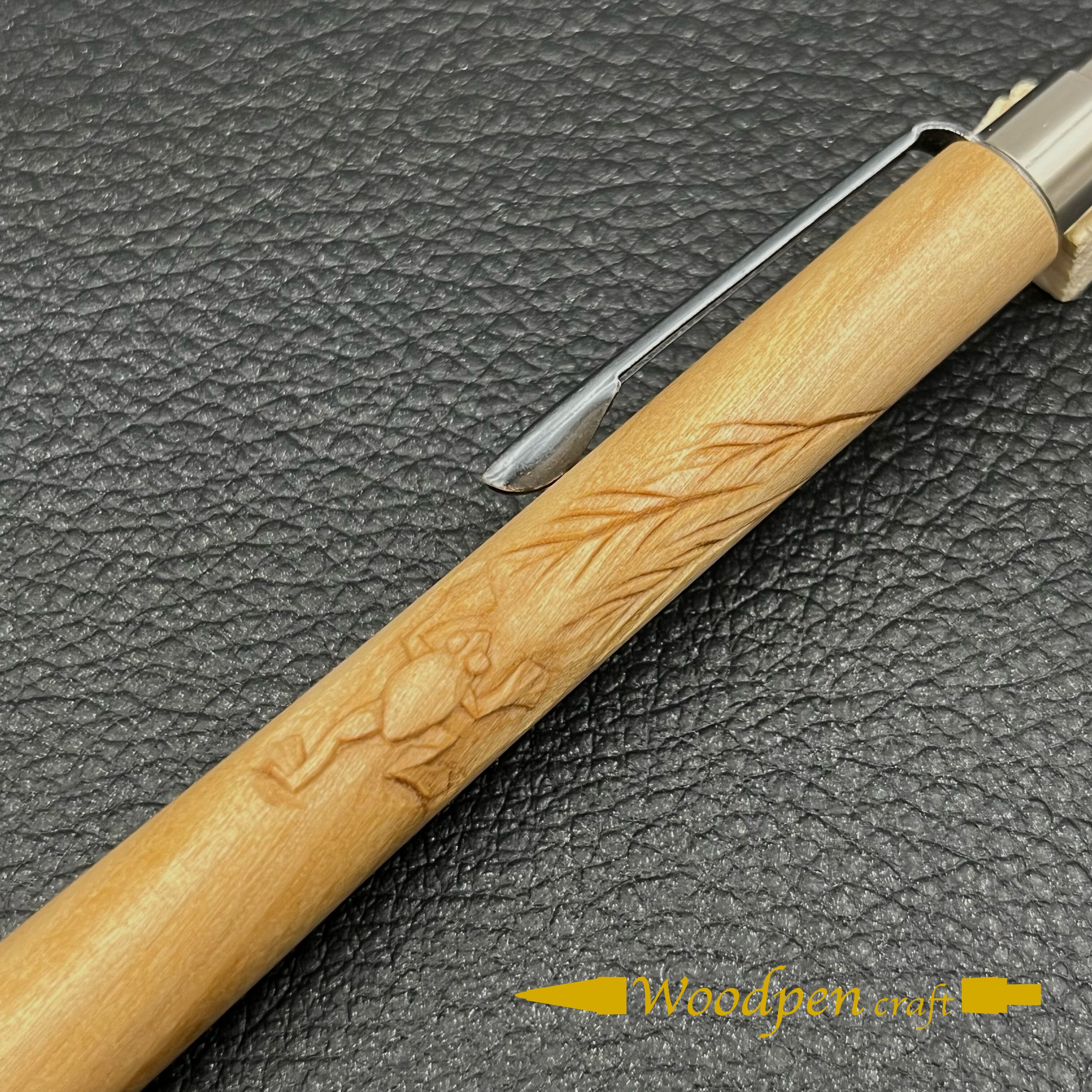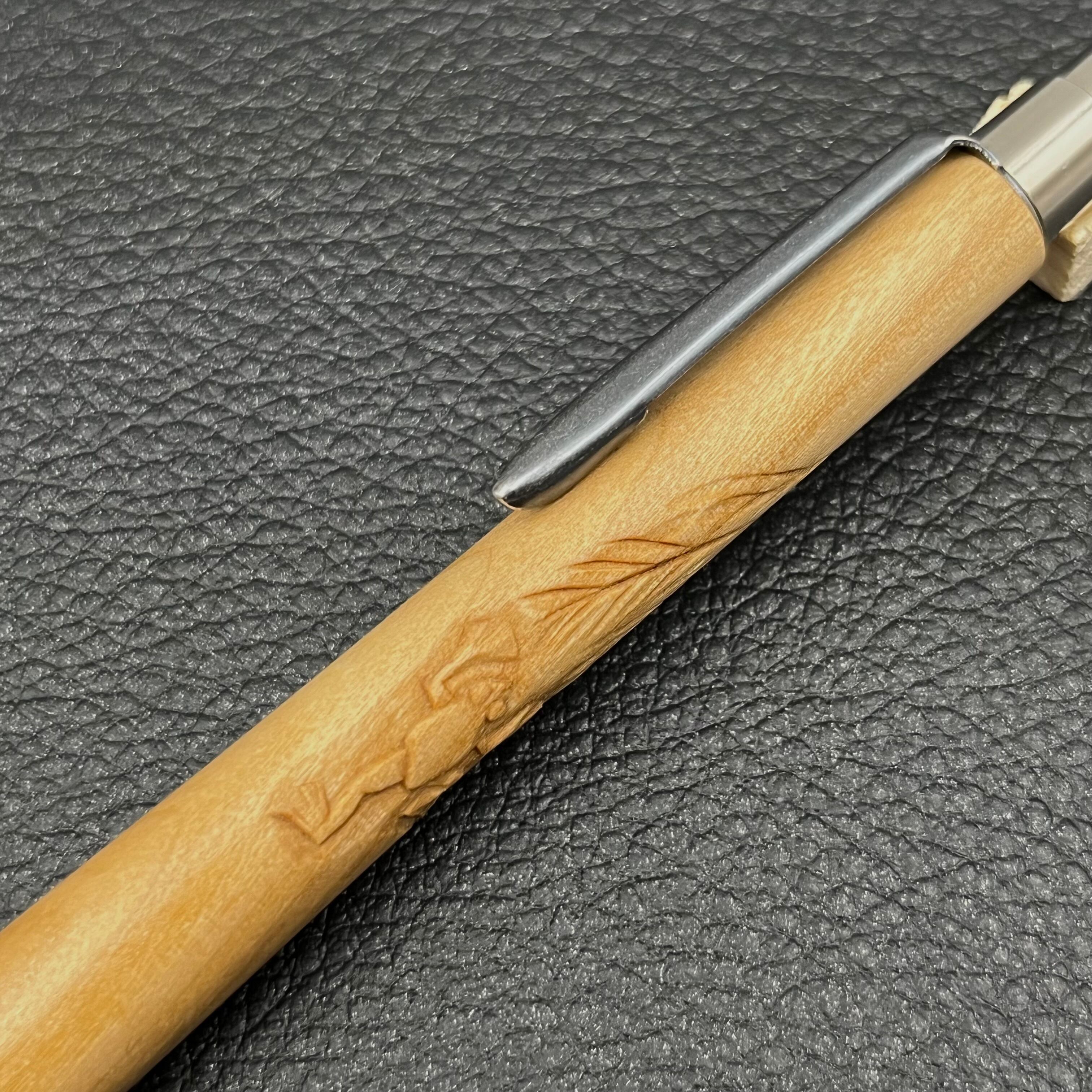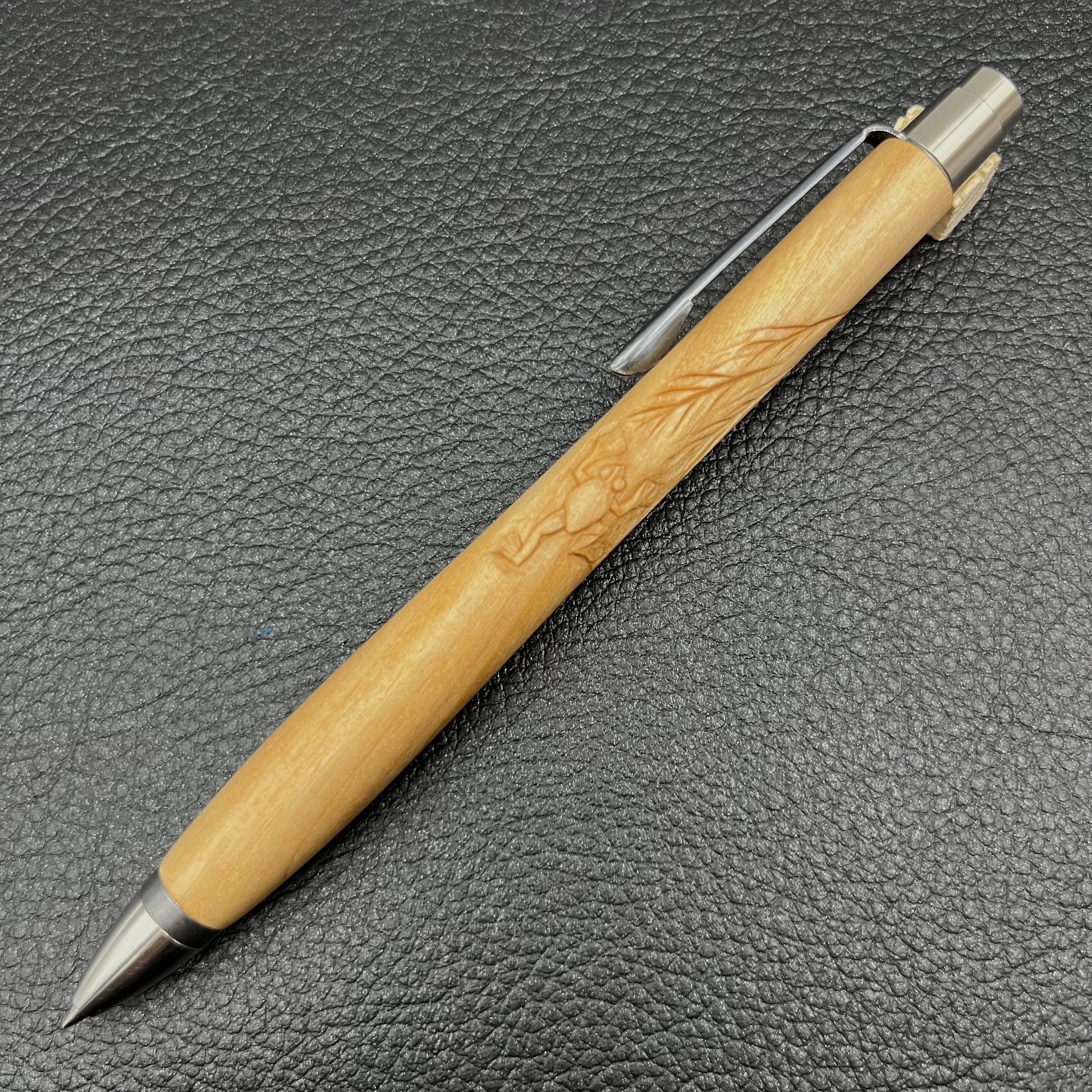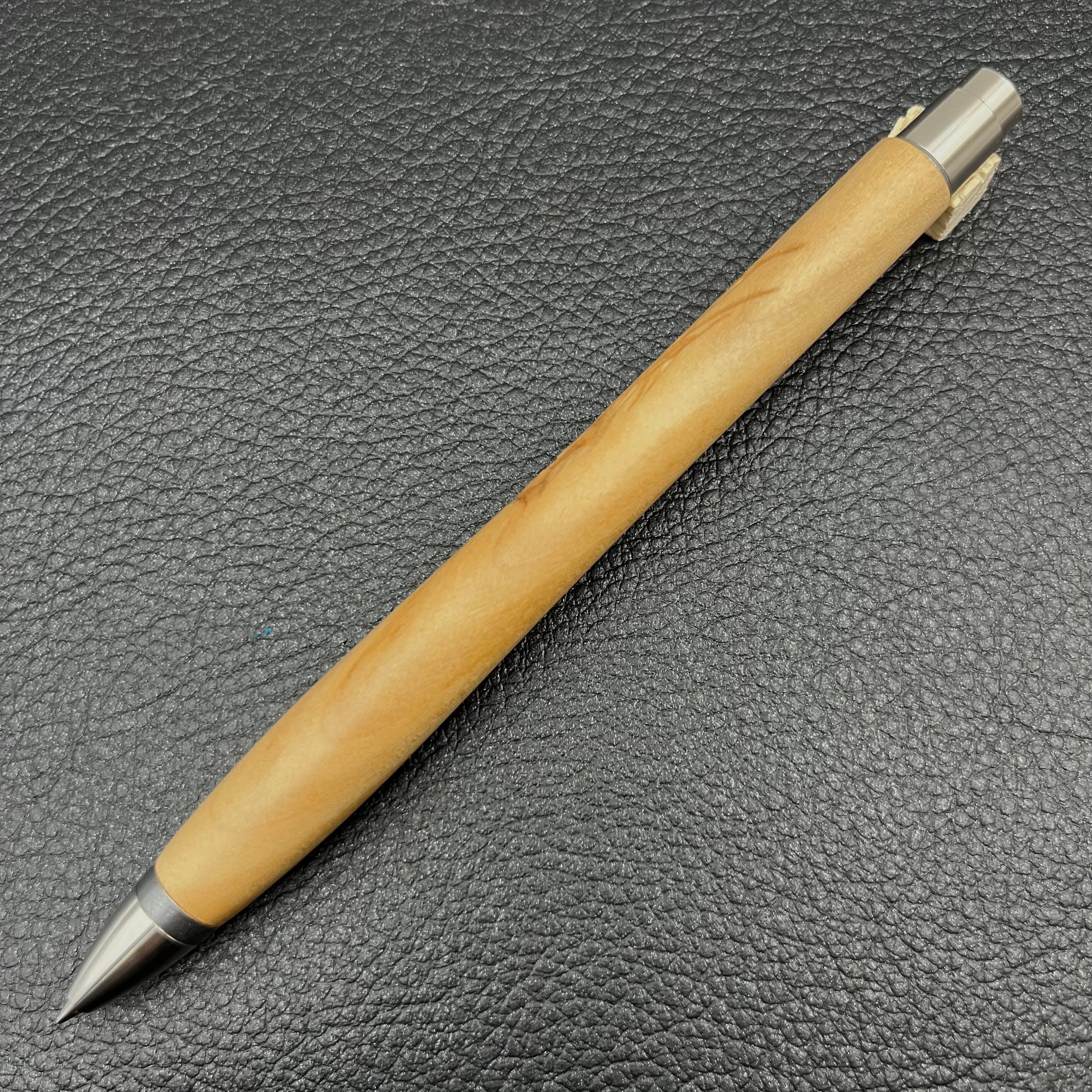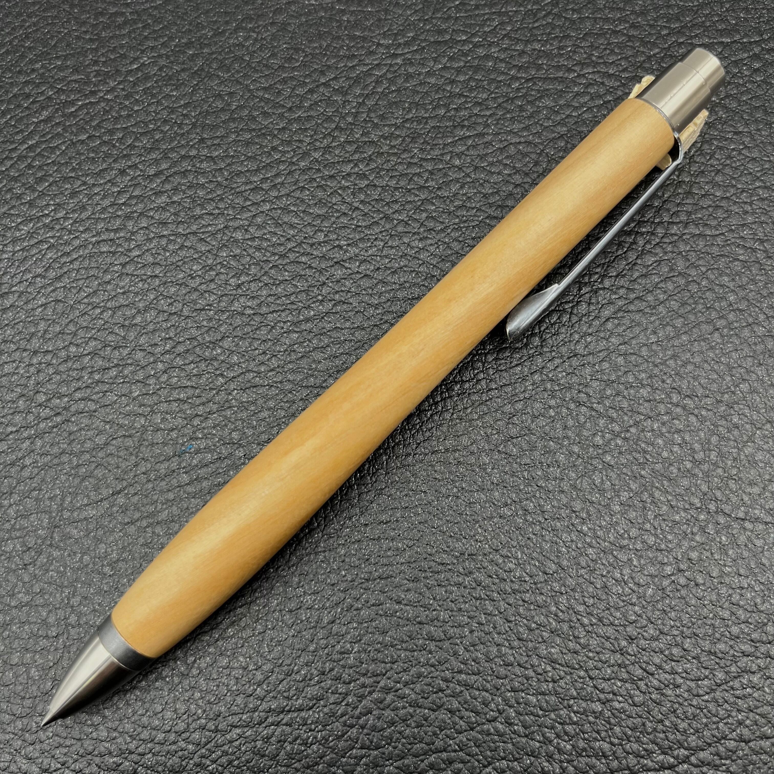 ボールペンのノックシステムは、ドイツ最高のクリックメカニズムを採用してあります。このメカニズムはユニークな機構のため、クリックしたときのカチカチ音が静かで、どんな場所でも気兼ねなく使うことができます。滑らかに動くこのプッシュ感覚を一度味わうと他には戻れなくなってしまうほどの魅力があります。 100分の1単位の加工精度で削り出されたペン先は、軸ブレも全くありません。