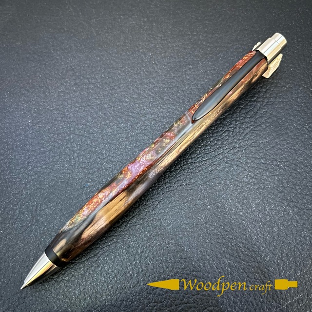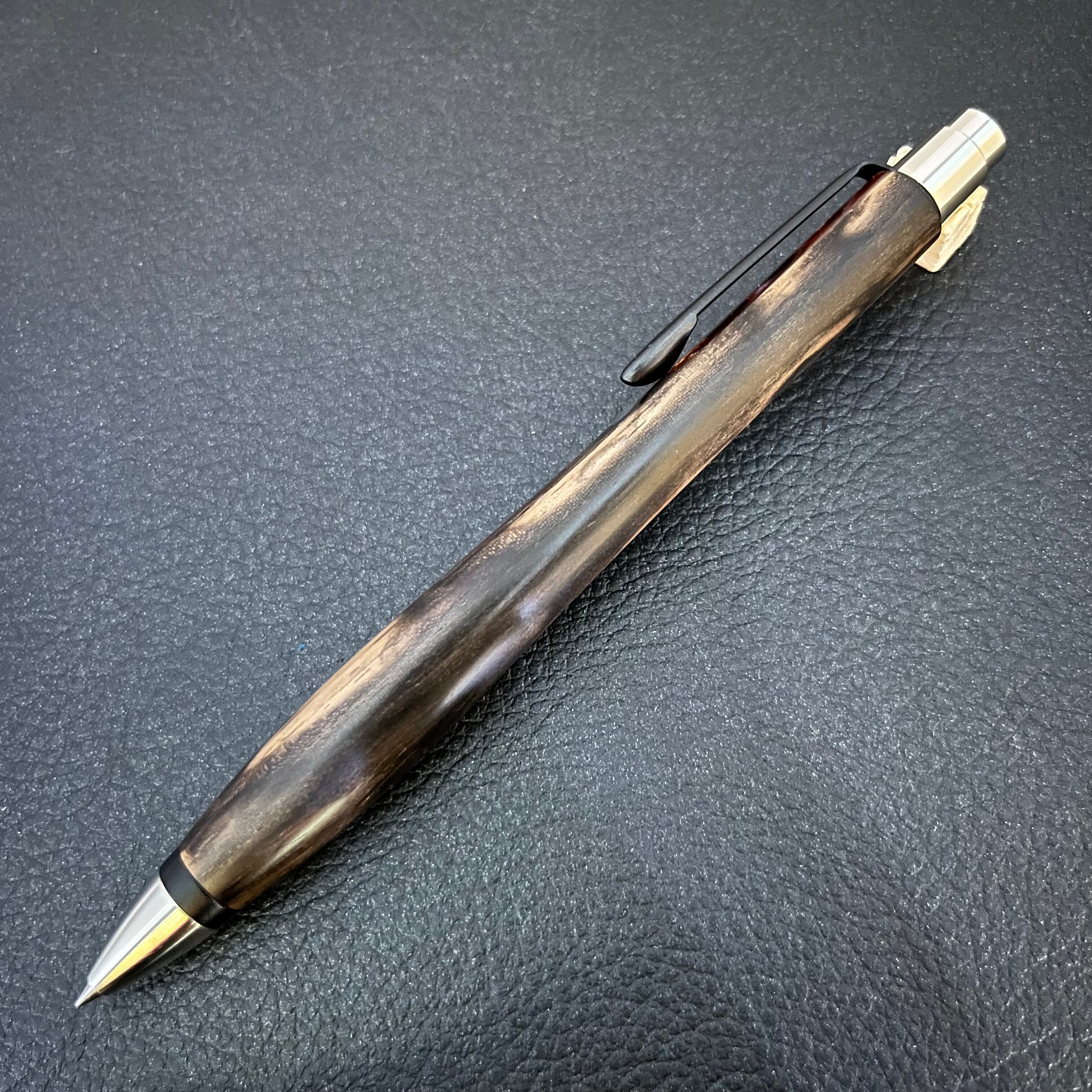 ボールペンのノックシステムは、ドイツ最高のクリックメカニズムを採用してあります。このメカニズムはユニークな機構のため、クリックしたときのカチカチ音が静かで、どんな場所でも気兼ねなく使うことができます。滑らかに動くこのプッシュ感覚を一度味わうと他には戻れなくなってしまうほどの魅力があります。 100分の1単位の加工精度で削り出されたペン先は、軸ブレも全くありません。