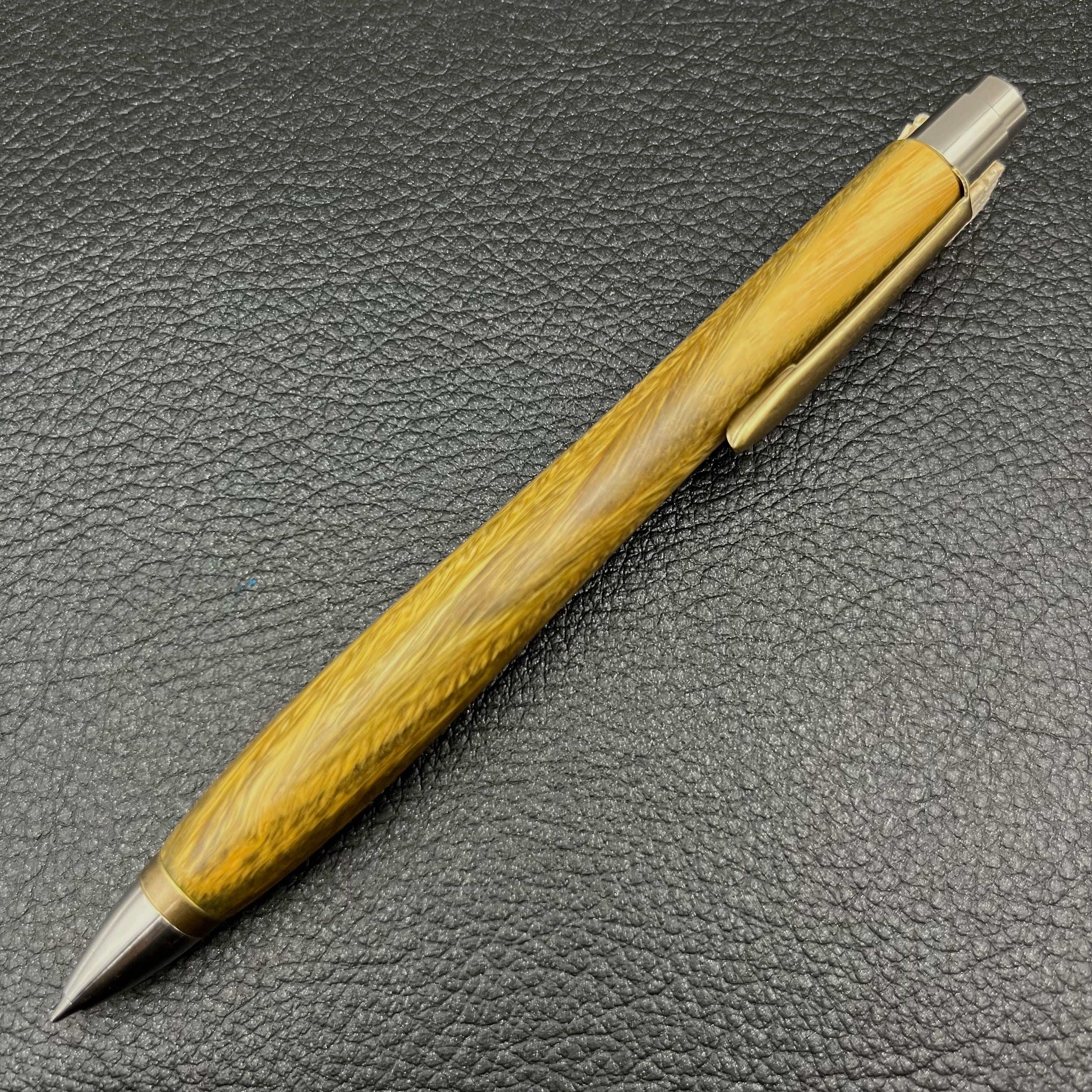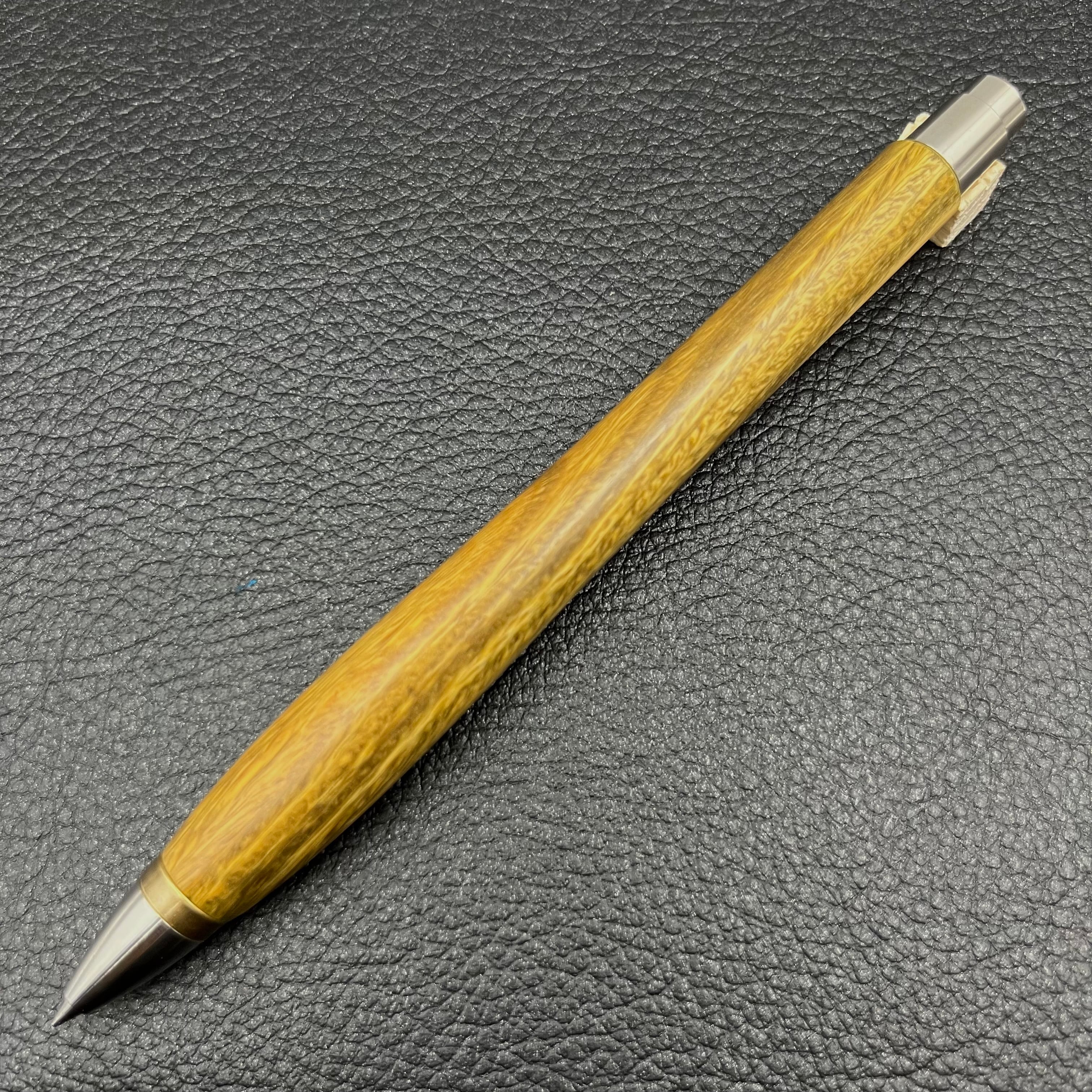 ボールペンのノックシステムは、ドイツ最高のクリックメカニズムを採用してあります。このメカニズムはユニークな機構のため、クリックしたときのカチカチ音が静かで、どんな場所でも気兼ねなく使うことができます。滑らかに動くこのプッシュ感覚を一度味わうと他には戻れなくなってしまうほどの魅力があります。 100分の1単位の加工精度で削り出されたペン先は、軸ブレも全くありません。
