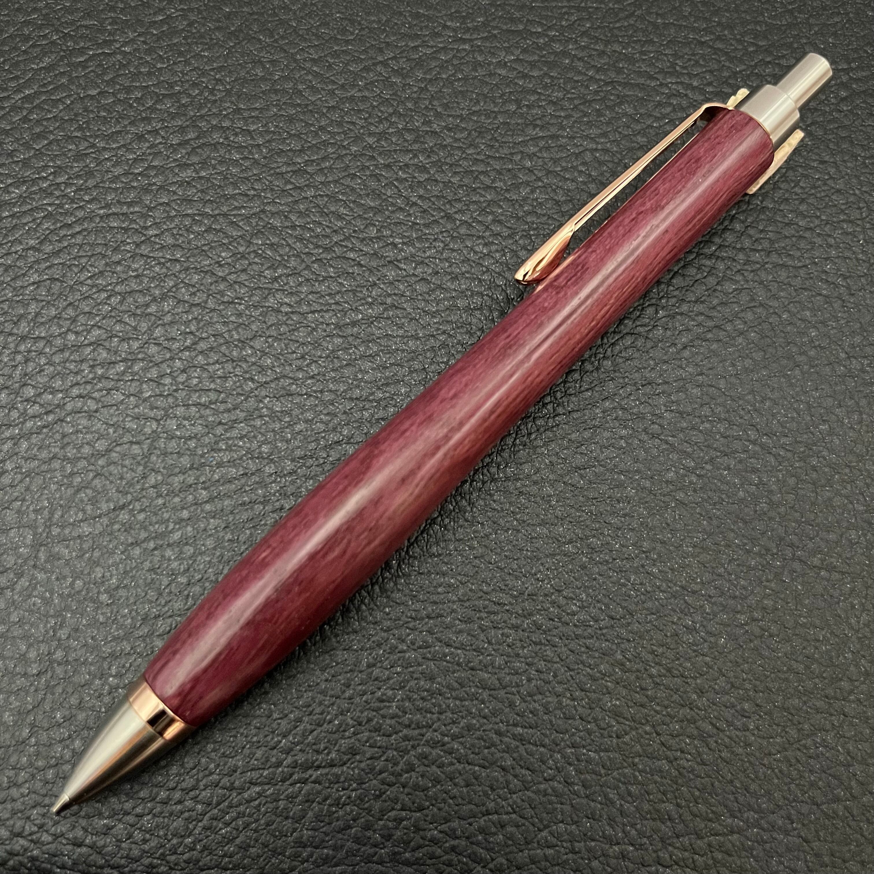 ペンシルは軸ブレが起こりにくい固定式口金を採用し、木の表情を最大限に楽しめる木軸の長さと、書き心地にこだわったバランスで金具を設計してあります。