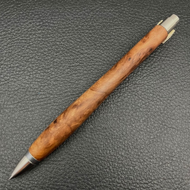 ※40年以上前に京都府中部で伐採された杉の瘤です。大好きな木で当たり前のように身近に在る木だからこそ誰も見たことのない杉瘤との出会いは衝撃的でした。こんな素晴らしい木を使ったペンを制作できたことを幸せに思っています。