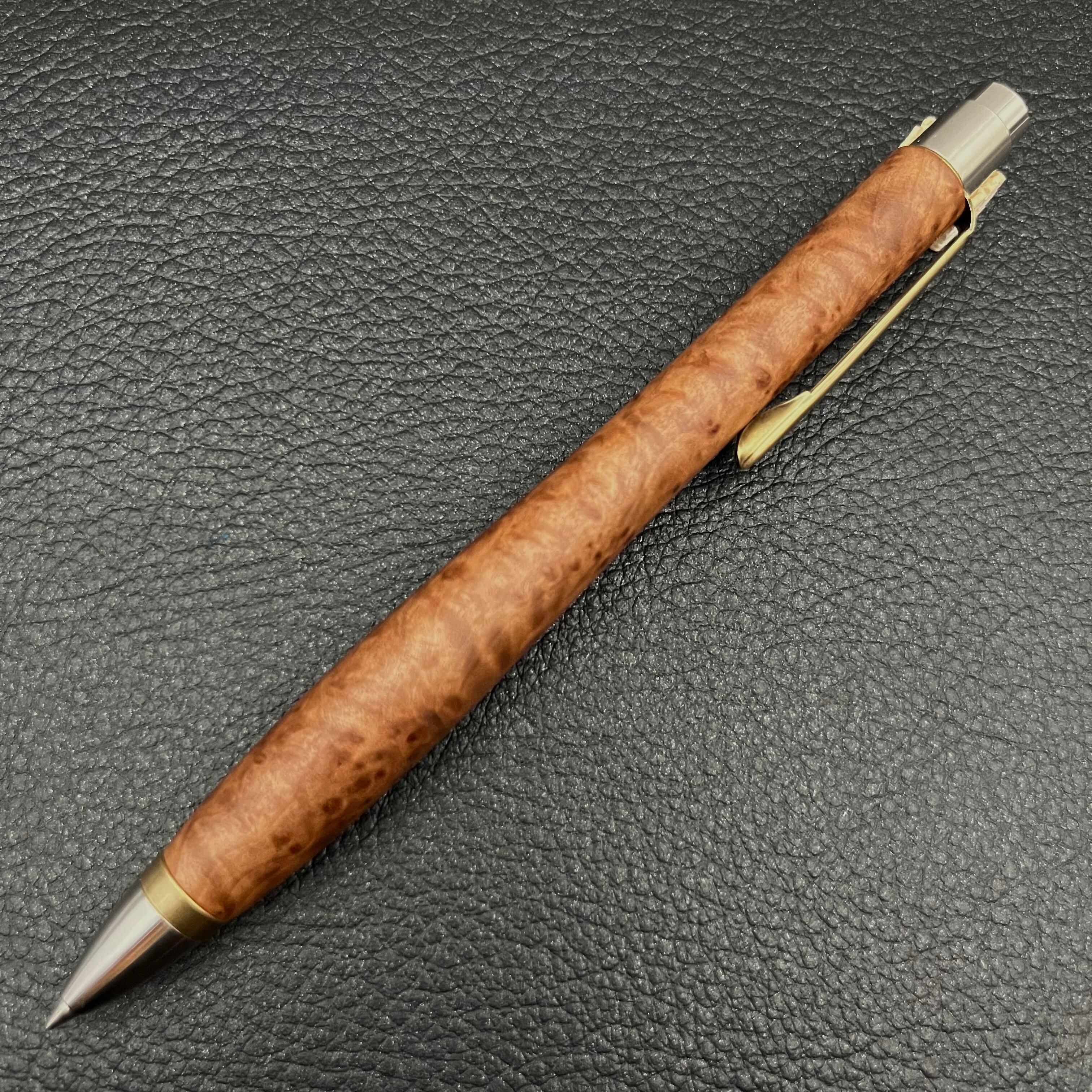 ※40年以上前に京都府中部で伐採された杉の瘤です。大好きな木で当たり前のように身近に在る木だからこそ誰も見たことのない杉瘤との出会いは衝撃的でした。こんな素晴らしい木を使ったペンを制作できたことを幸せに思っています。