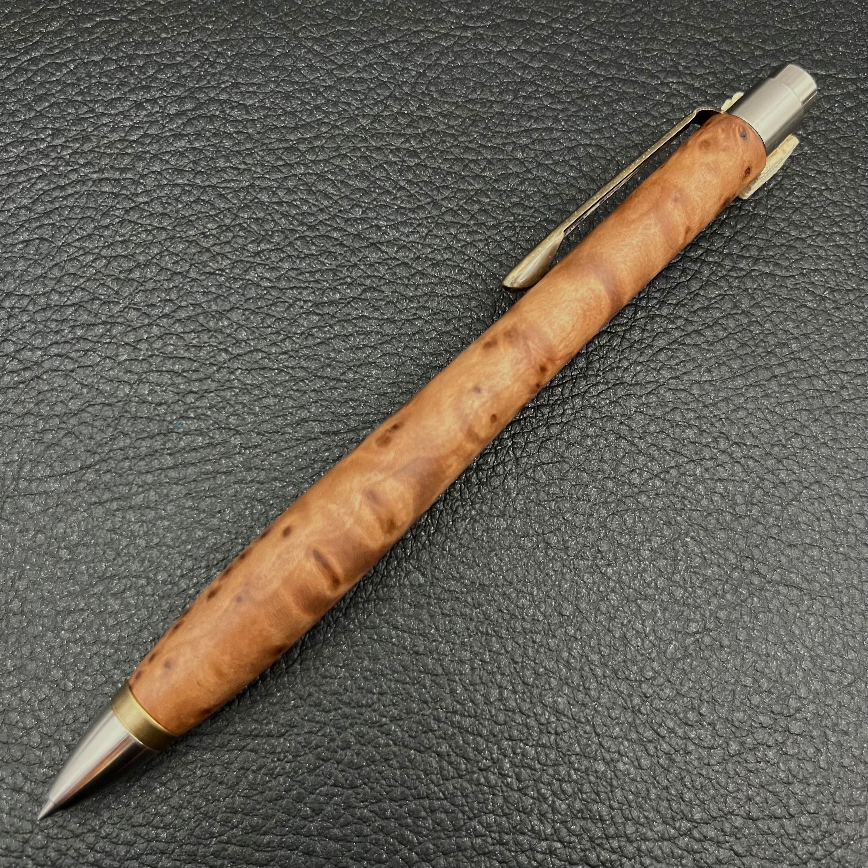 ※40年以上前に京都府中部で伐採された杉の瘤です。大好きな木で当たり前のように身近に在る木だからこそ誰も見たことのない杉瘤との出会いは衝撃的でした。こんな素晴らしい木を使ったペンを制作できたことを幸せに思っています。