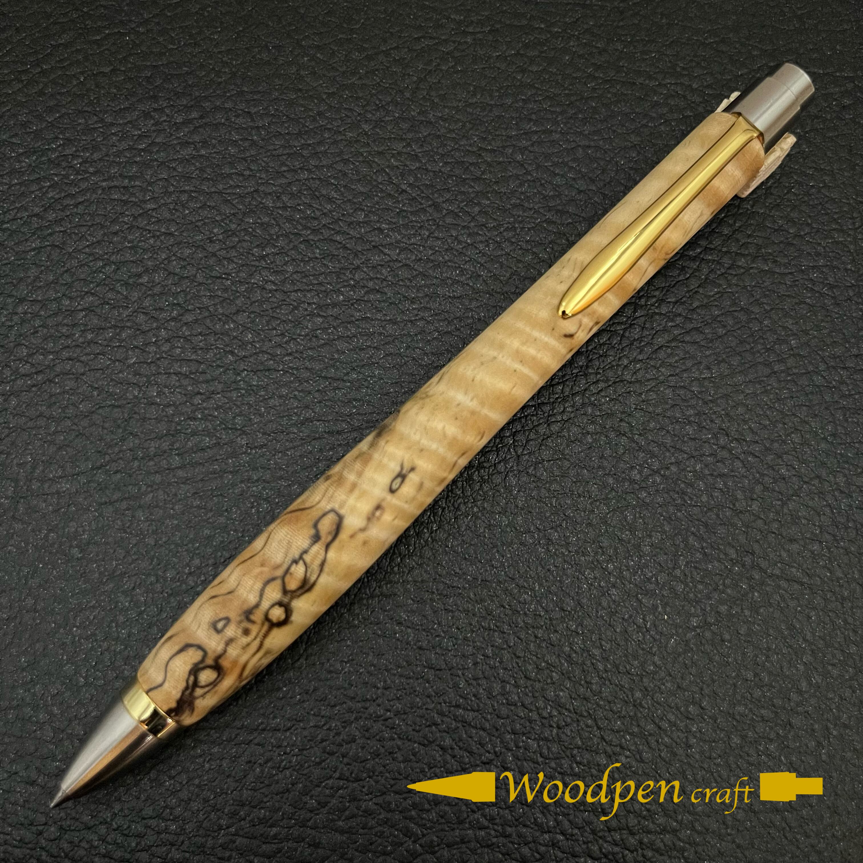ボールペンのノックシステムは、ドイツ最高のクリックメカニズムを採用してあります。このメカニズムはユニークな機構のため、クリックしたときのカチカチ音が静かで、どんな場所でも気兼ねなく使うことができます。滑らかに動くこのプッシュ感覚を一度味わうと他には戻れなくなってしまうほどの魅力があります。 100分の1単位の加工精度で削り出されたペン先は、軸ブレも全くありません。