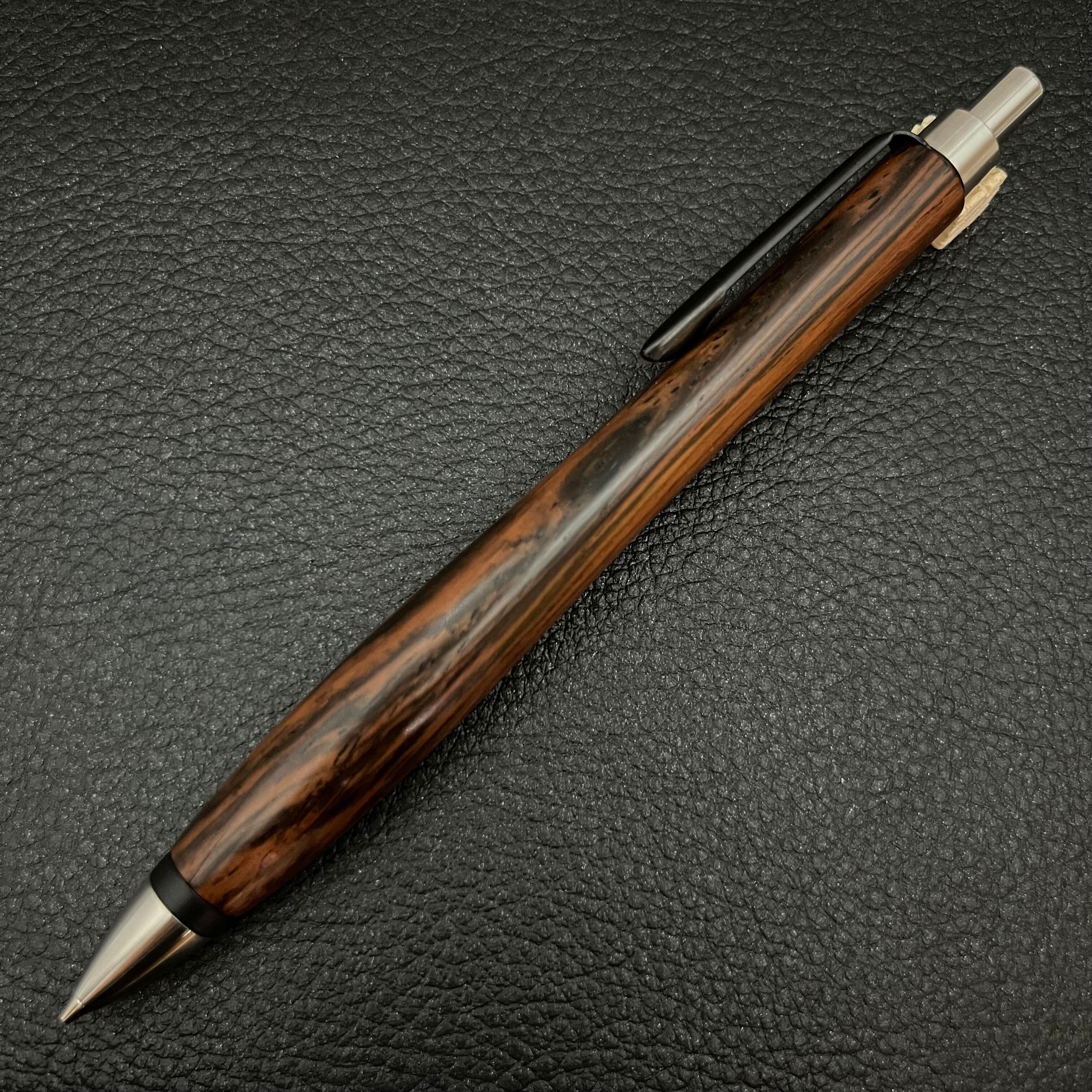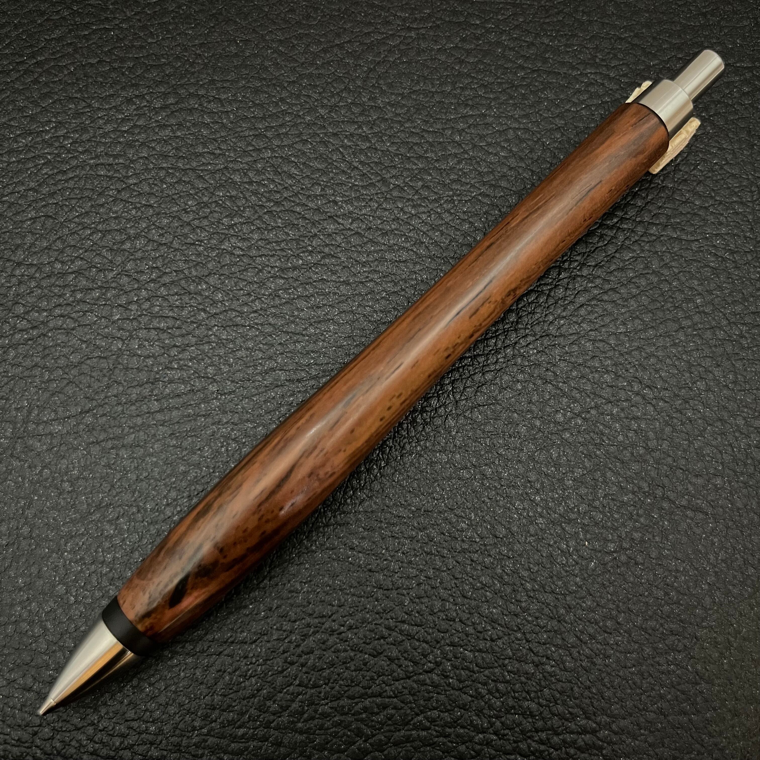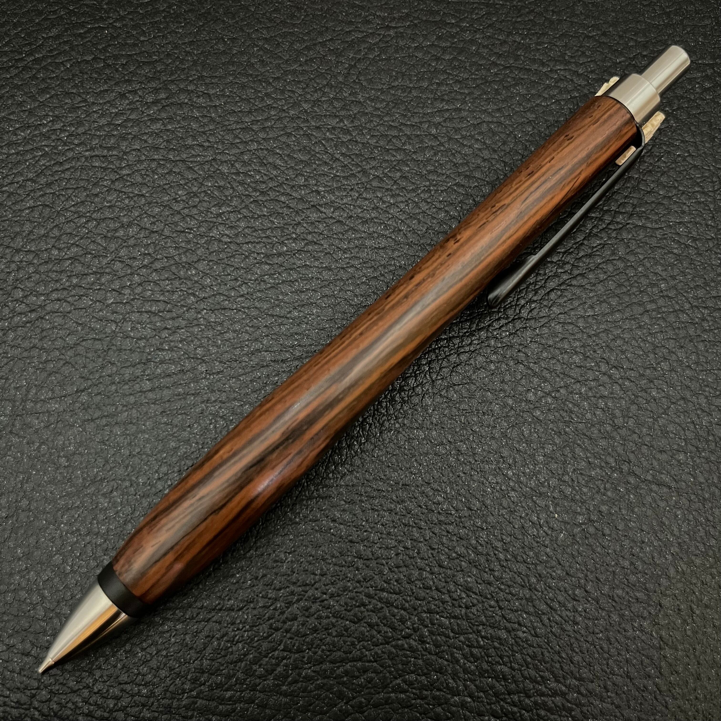 ペンシルは軸ブレが起こりにくい固定式口金を採用し、木の表情を最大限に楽しめる木軸の長さと、書き心地にこだわったバランスで金具を設計してあります。
