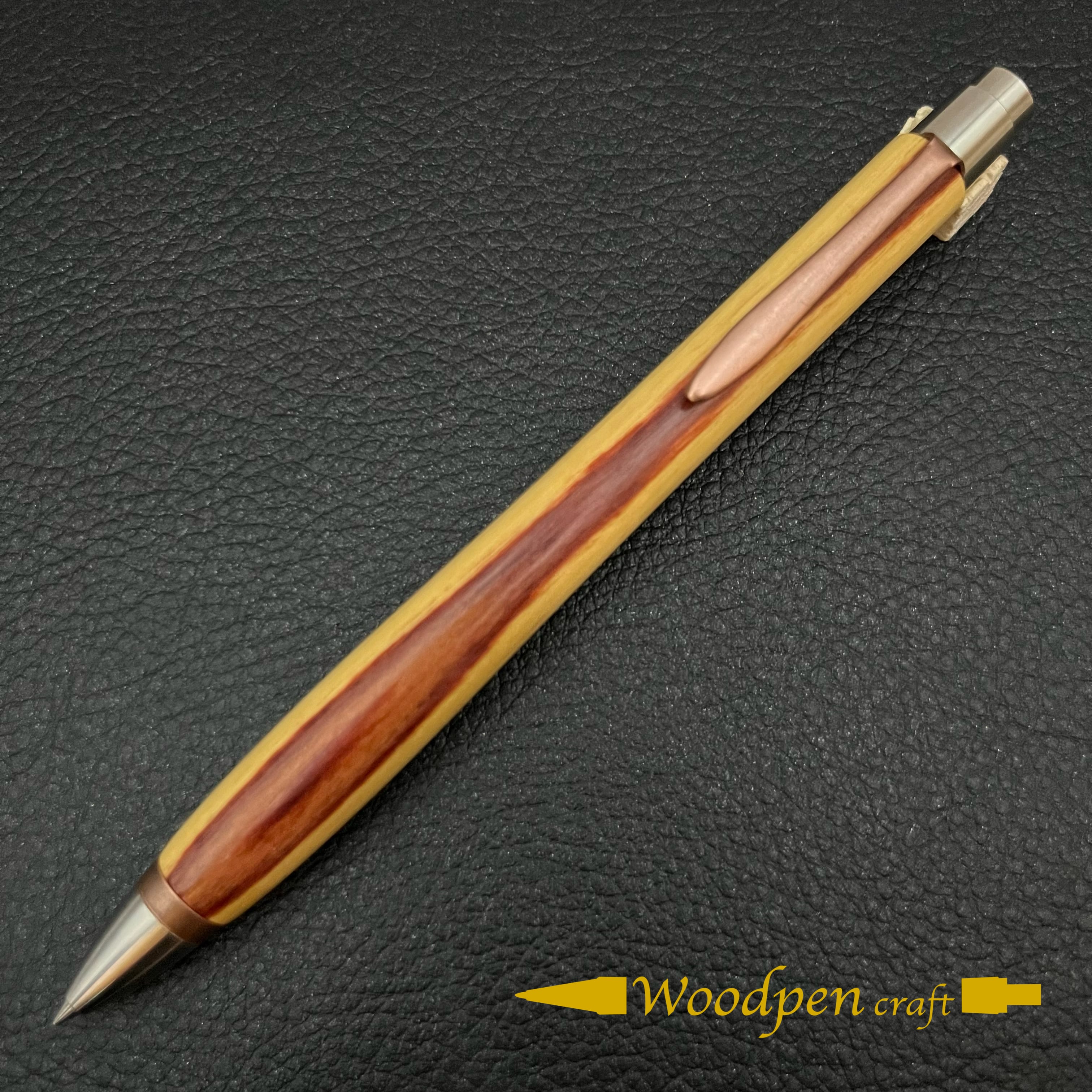 ボールペンのノックシステムは、ドイツ最高のクリックメカニズムを採用してあります。このメカニズムはユニークな機構のため、クリックしたときのカチカチ音が静かで、どんな場所でも気兼ねなく使うことができます。滑らかに動くこのプッシュ感覚を一度味わうと他には戻れなくなってしまうほどの魅力があります。 100分の1単位の加工精度で削り出されたペン先は、軸ブレも全くありません。