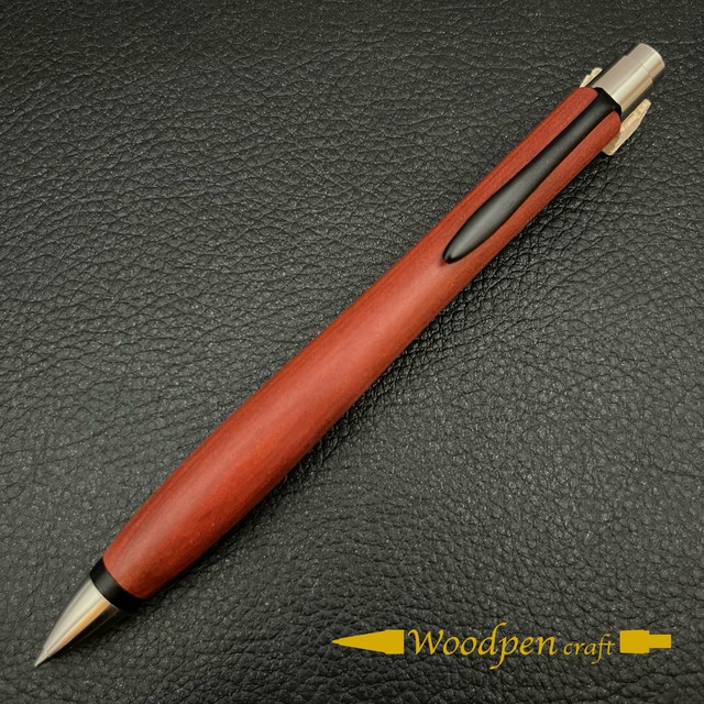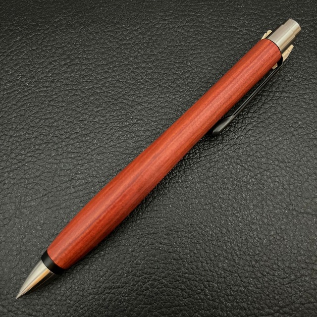 ボールペンのノックシステムは、ドイツ最高のクリックメカニズムを採用してあります。このメカニズムはユニークな機構のため、クリックしたときのカチカチ音が静かで、どんな場所でも気兼ねなく使うことができます。滑らかに動くこのプッシュ感覚を一度味わうと他には戻れなくなってしまうほどの魅力があります。 100分の1単位の加工精度で削り出されたペン先は、軸ブレも全くありません。