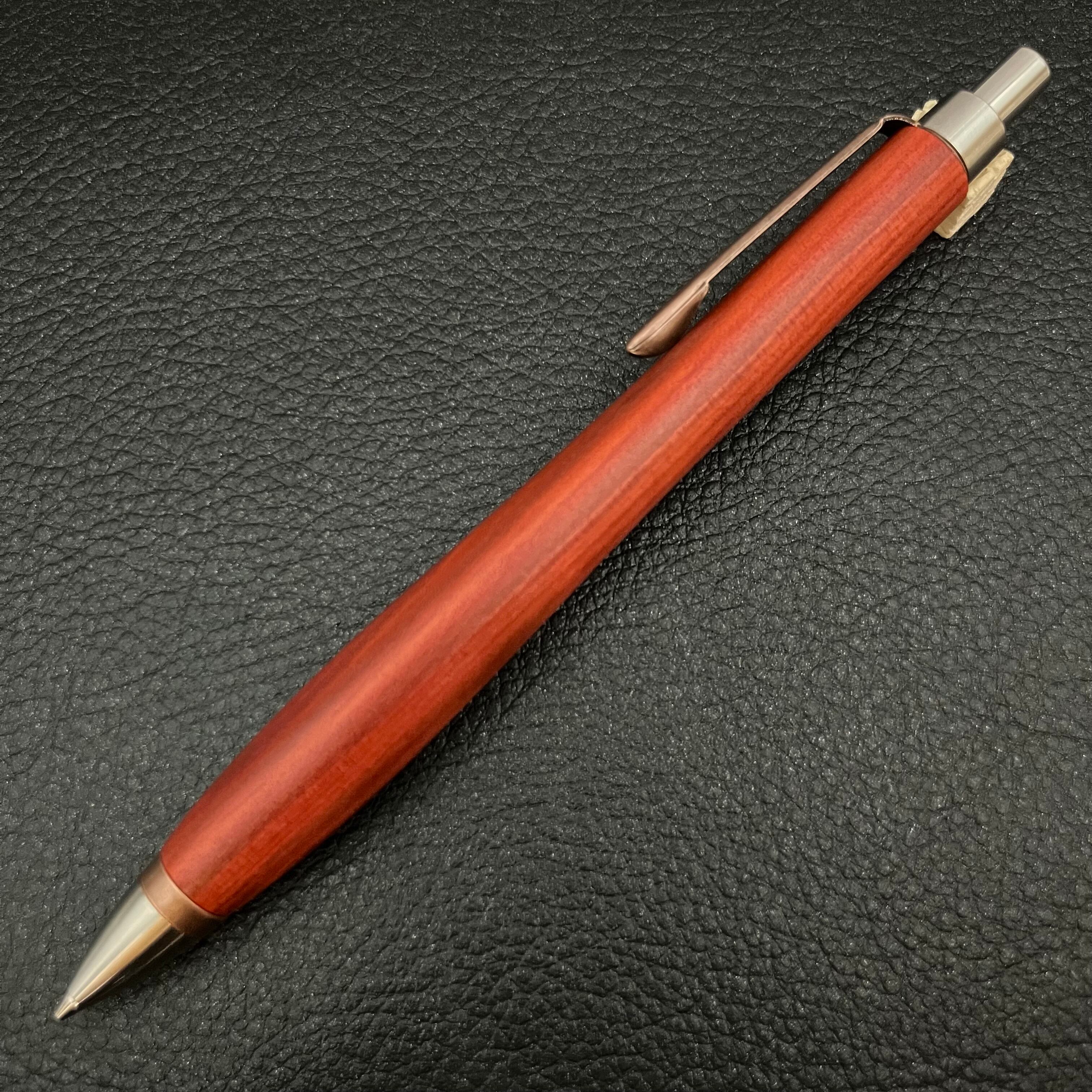 ペンシルは軸ブレが起こりにくい固定式口金を採用し、木の表情を最大限に楽しめる木軸の長さと、書き心地にこだわったバランスで金具を設計してあります。