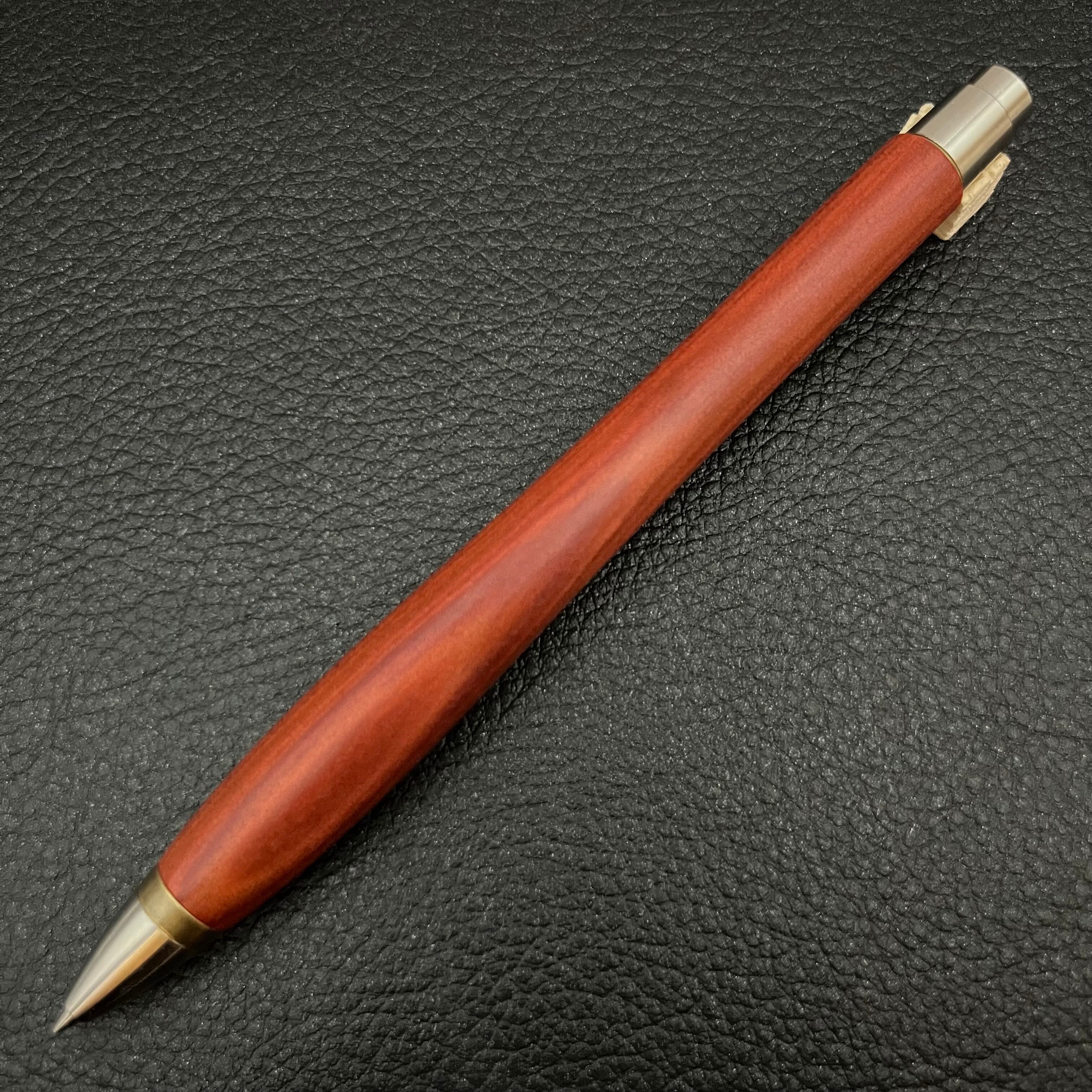 ボールペンのノックシステムは、ドイツ最高のクリックメカニズムを採用してあります。このメカニズムはユニークな機構のため、クリックしたときのカチカチ音が静かで、どんな場所でも気兼ねなく使うことができます。滑らかに動くこのプッシュ感覚を一度味わうと他には戻れなくなってしまうほどの魅力があります。 100分の1単位の加工精度で削り出されたペン先は、軸ブレも全くありません。