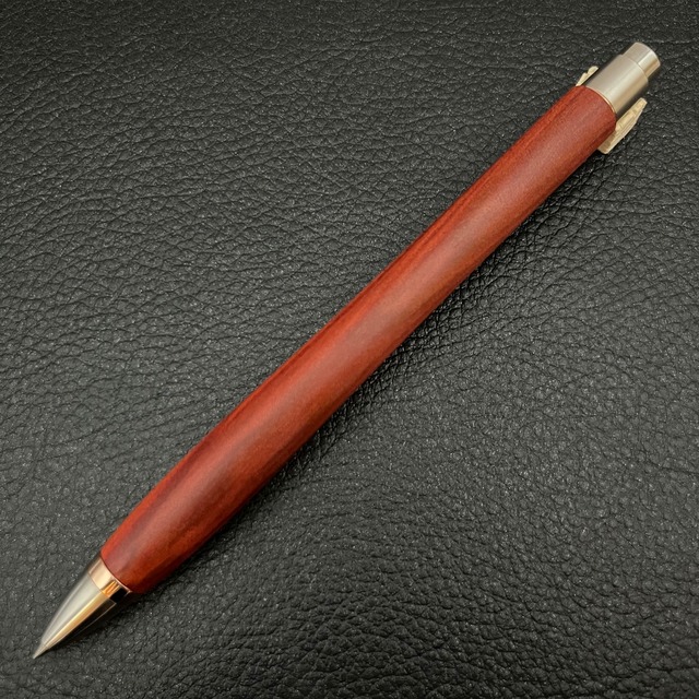ボールペンのノックシステムは、ドイツ最高のクリックメカニズムを採用してあります。このメカニズムはユニークな機構のため、クリックしたときのカチカチ音が静かで、どんな場所でも気兼ねなく使うことができます。滑らかに動くこのプッシュ感覚を一度味わうと他には戻れなくなってしまうほどの魅力があります。 100分の1単位の加工精度で削り出されたペン先は、軸ブレも全くありません。