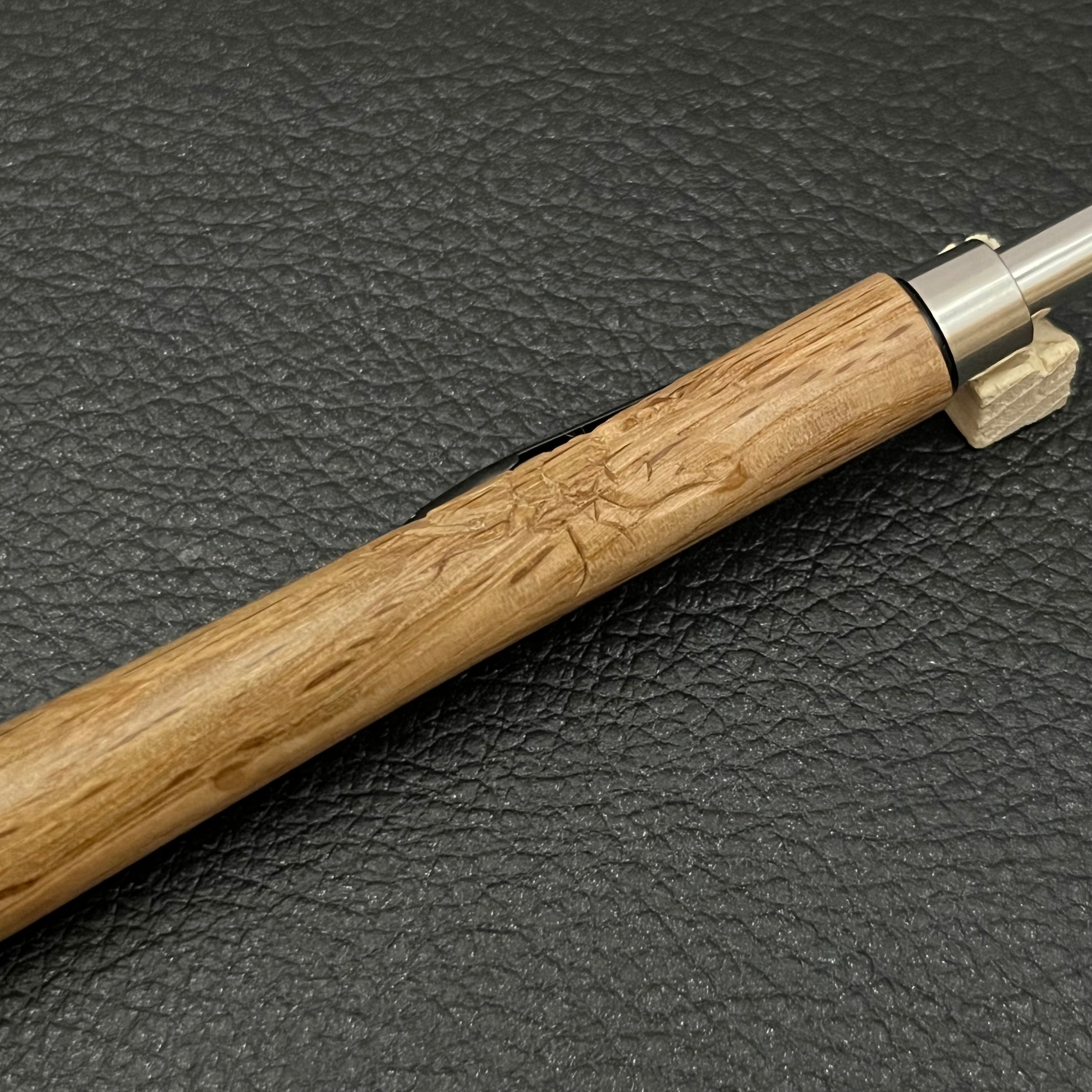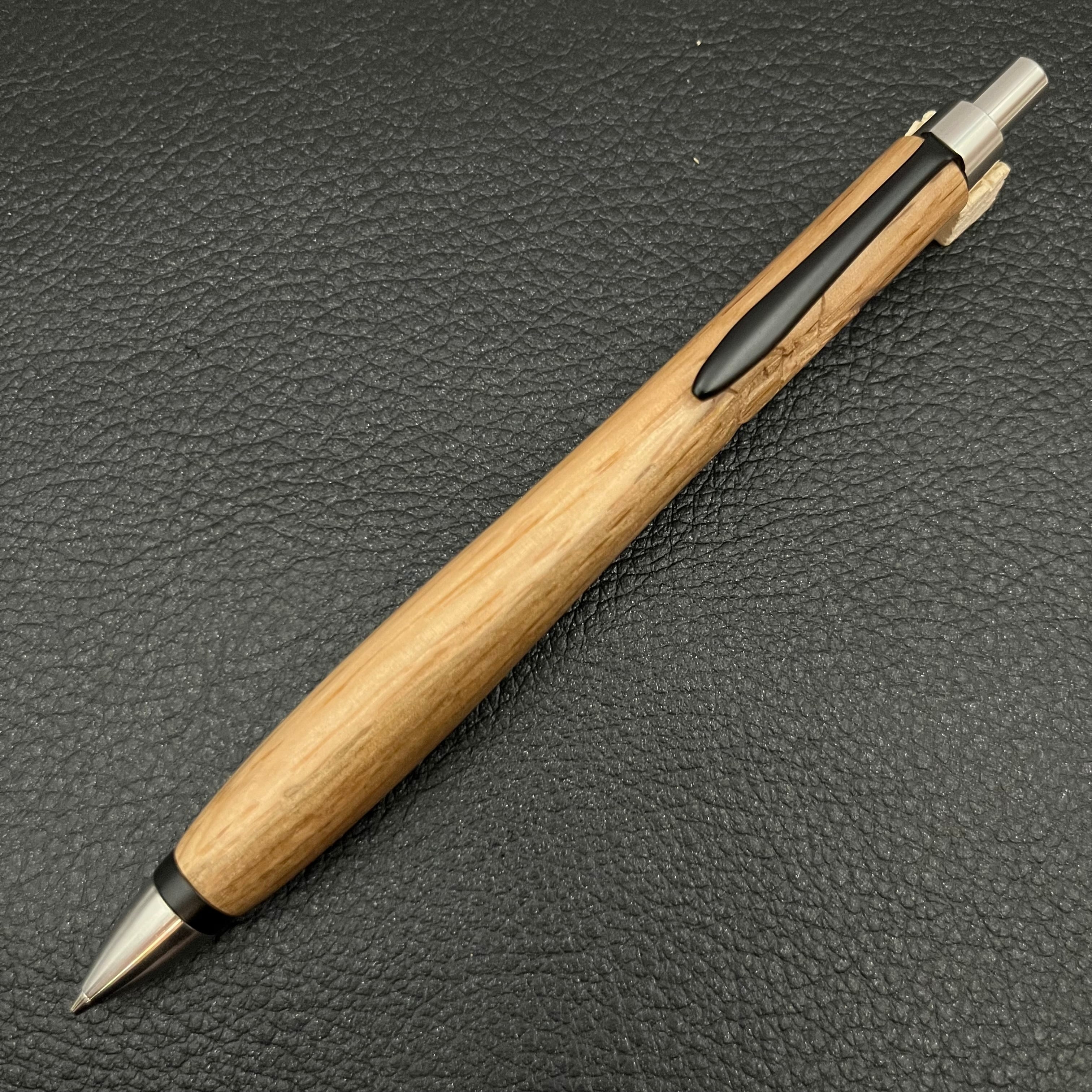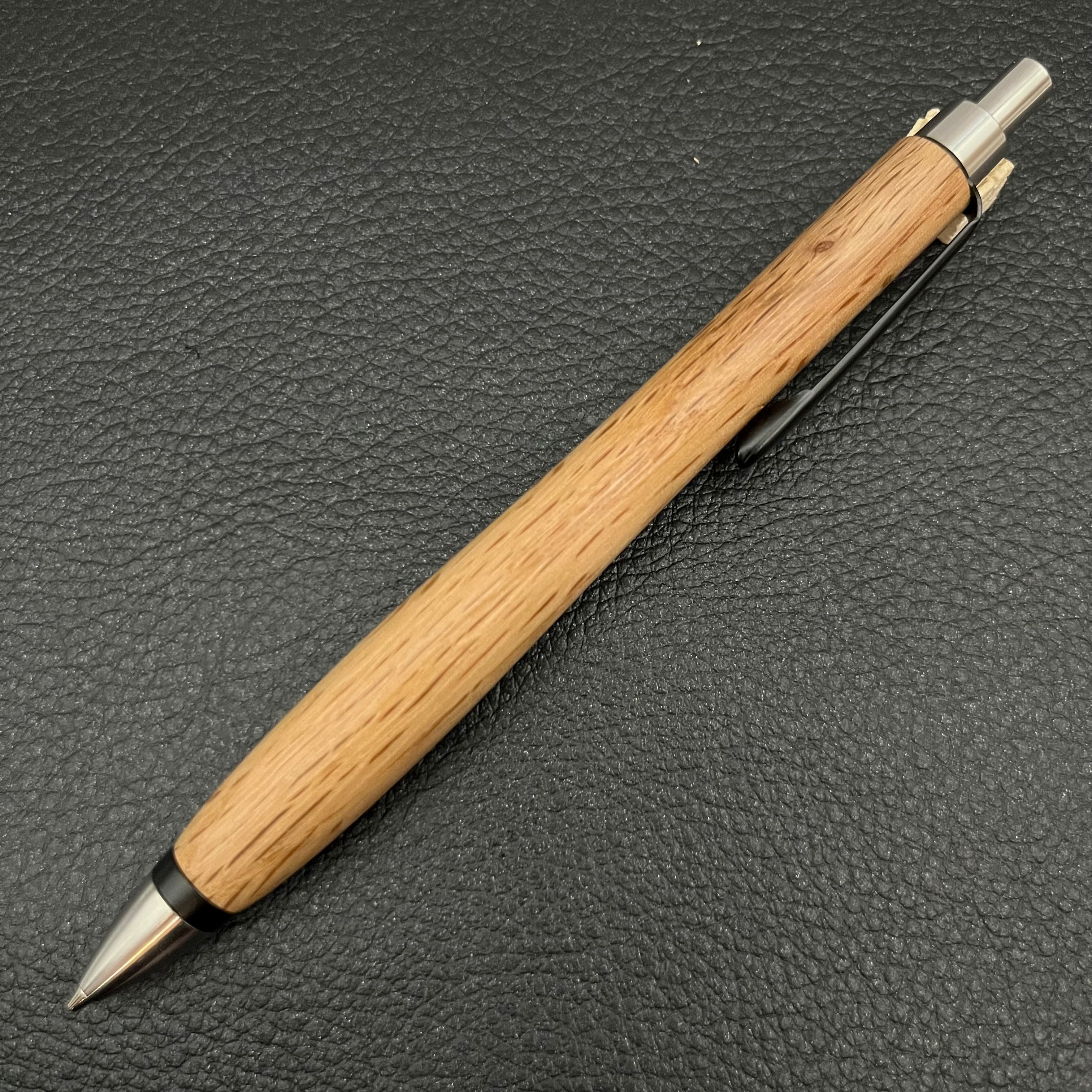 ペンシルは軸ブレが起こりにくい固定式口金を採用し、木の表情を最大限に楽しめる木軸の長さと、書き心地にこだわったバランスで金具を設計してあります。
