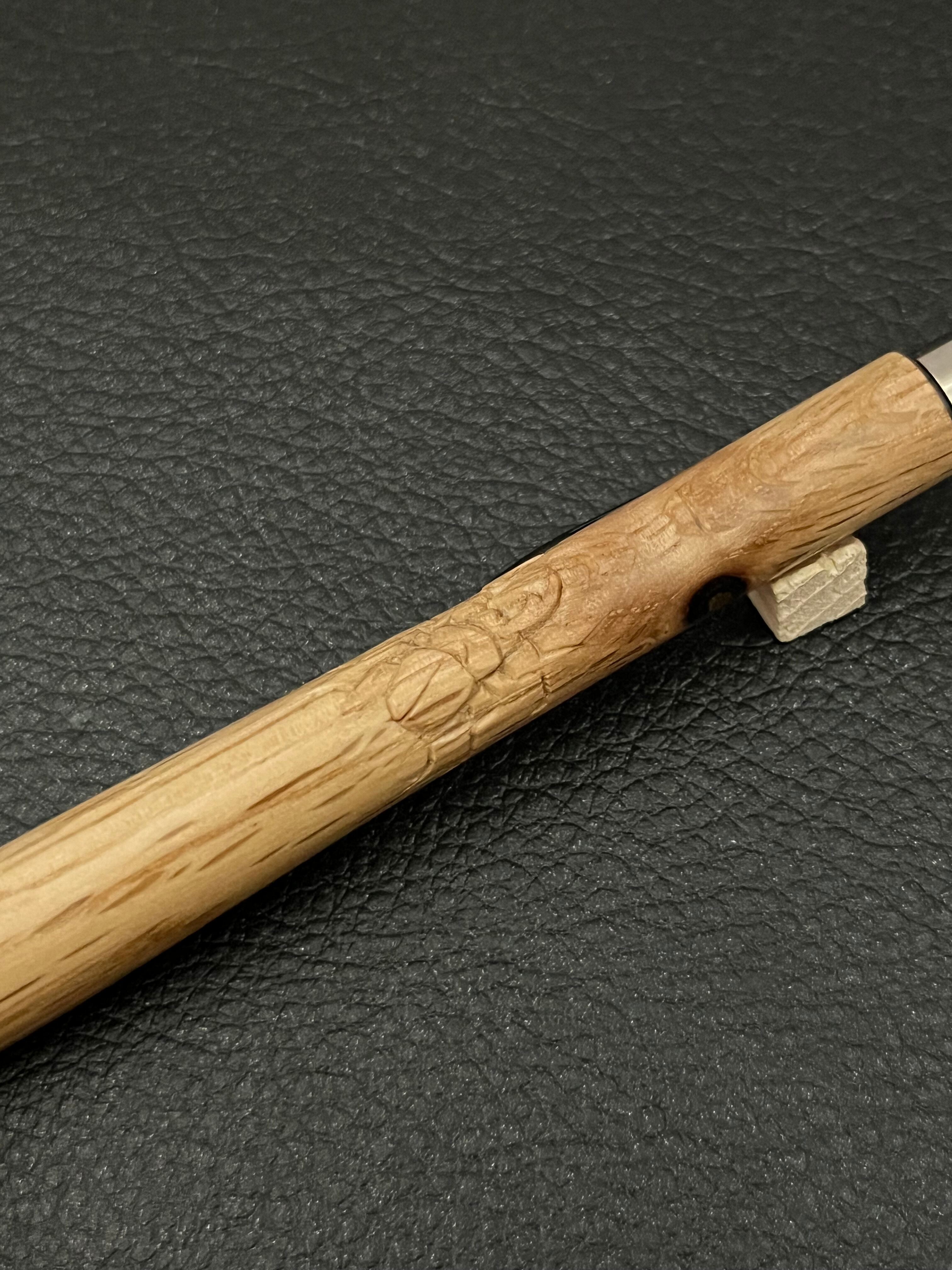 ※55年の三河彫職人さんの技で直径10㎜の曲線に立体的に彫られたクワガタムシ。
