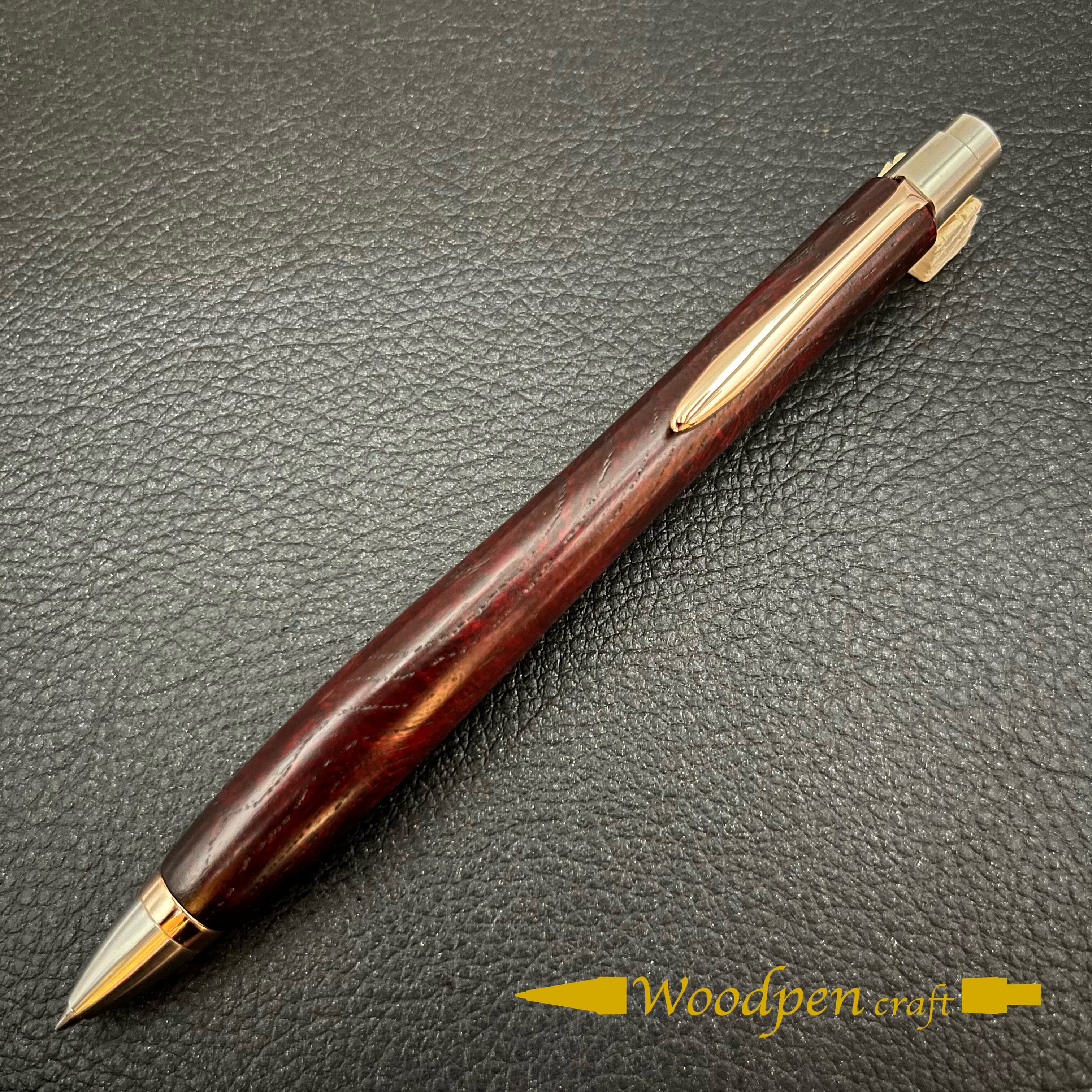 ボールペンのノックシステムは、ドイツ最高のクリックメカニズムを採用してあります。このメカニズムはユニークな機構のため、クリックしたときのカチカチ音が静かで、どんな場所でも気兼ねなく使うことができます。滑らかに動くこのプッシュ感覚を一度味わうと他には戻れなくなってしまうほどの魅力があります。 100分の1単位の加工精度で削り出されたペン先は、軸ブレも全くありません。