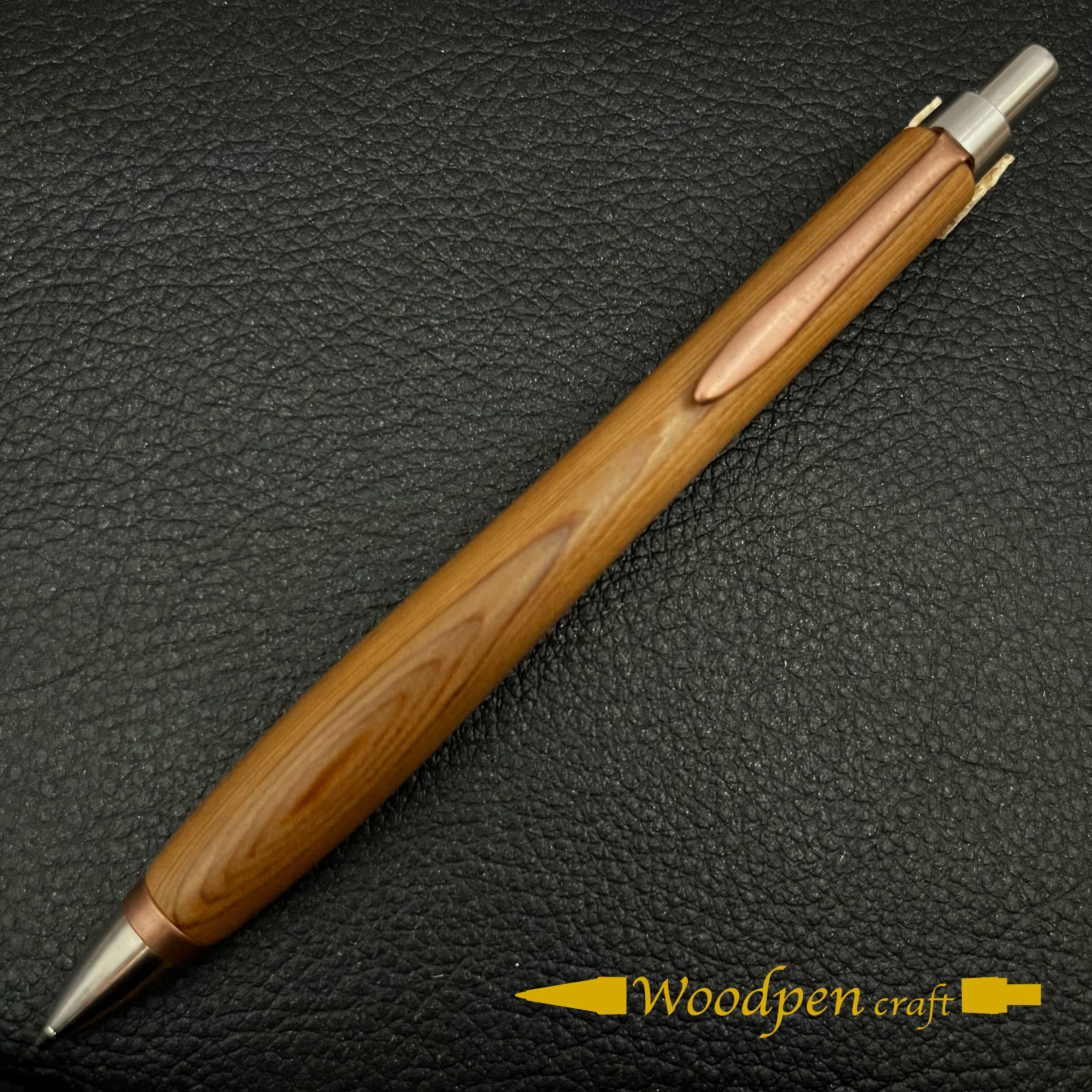 ペンシルは軸ブレが起こりにくい固定式口金を採用し、木の表情を最大限に楽しめる木軸の長さと、書き心地にこだわったバランスで金具を設計してあります。