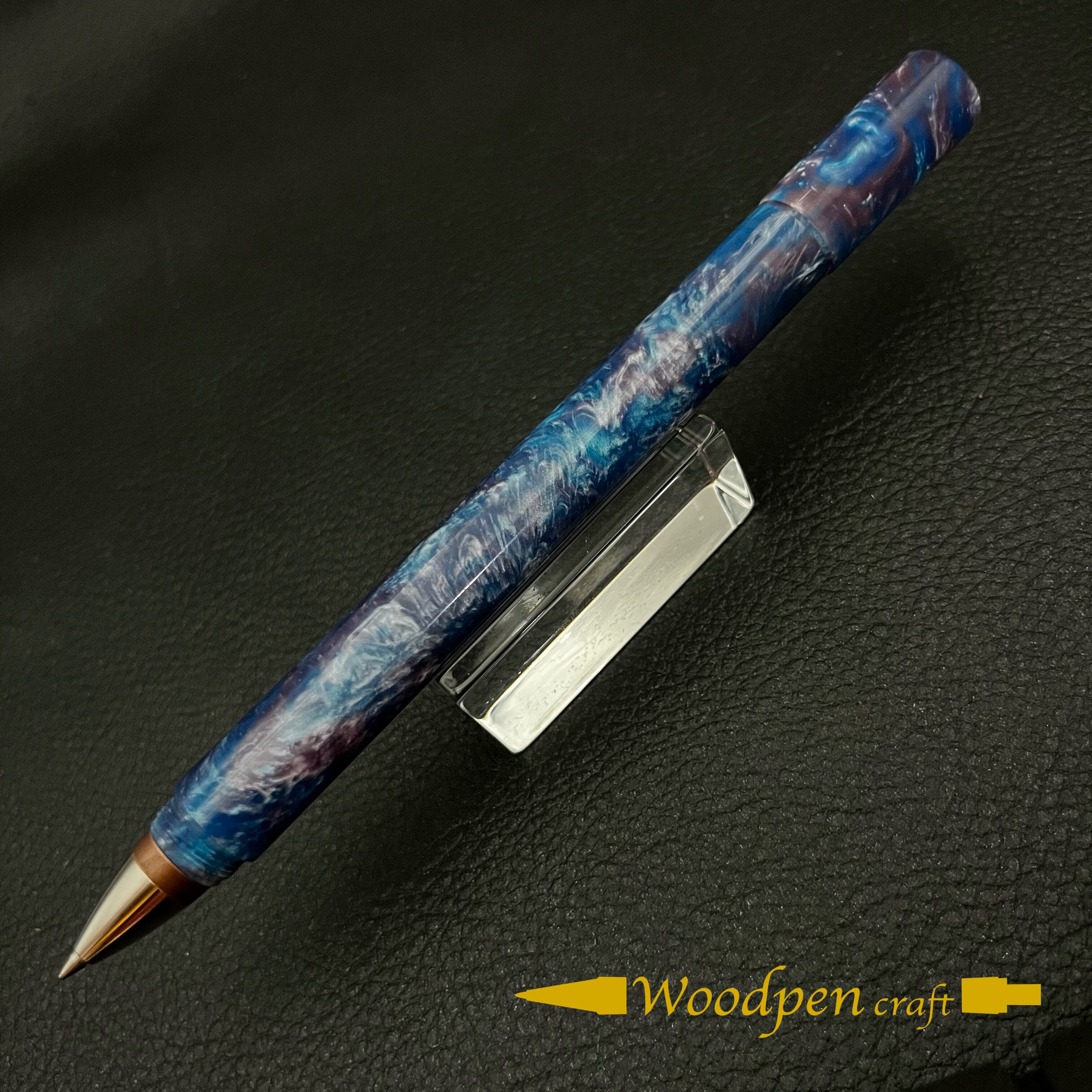 金具職人さんが万年筆「粋」の制作で得た樹脂加工の技術と知識を活かして制作したこだわりの1本です。オリジナルアクリル透明ペン置きもセットになっています。