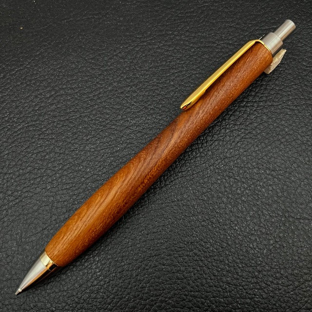 ペンに使った木は、推定50年以上も前に雷に打たれた大枝を強剪定したもので、巨木と雷の影響で普通の欅と色合いが全く違い濃いです。