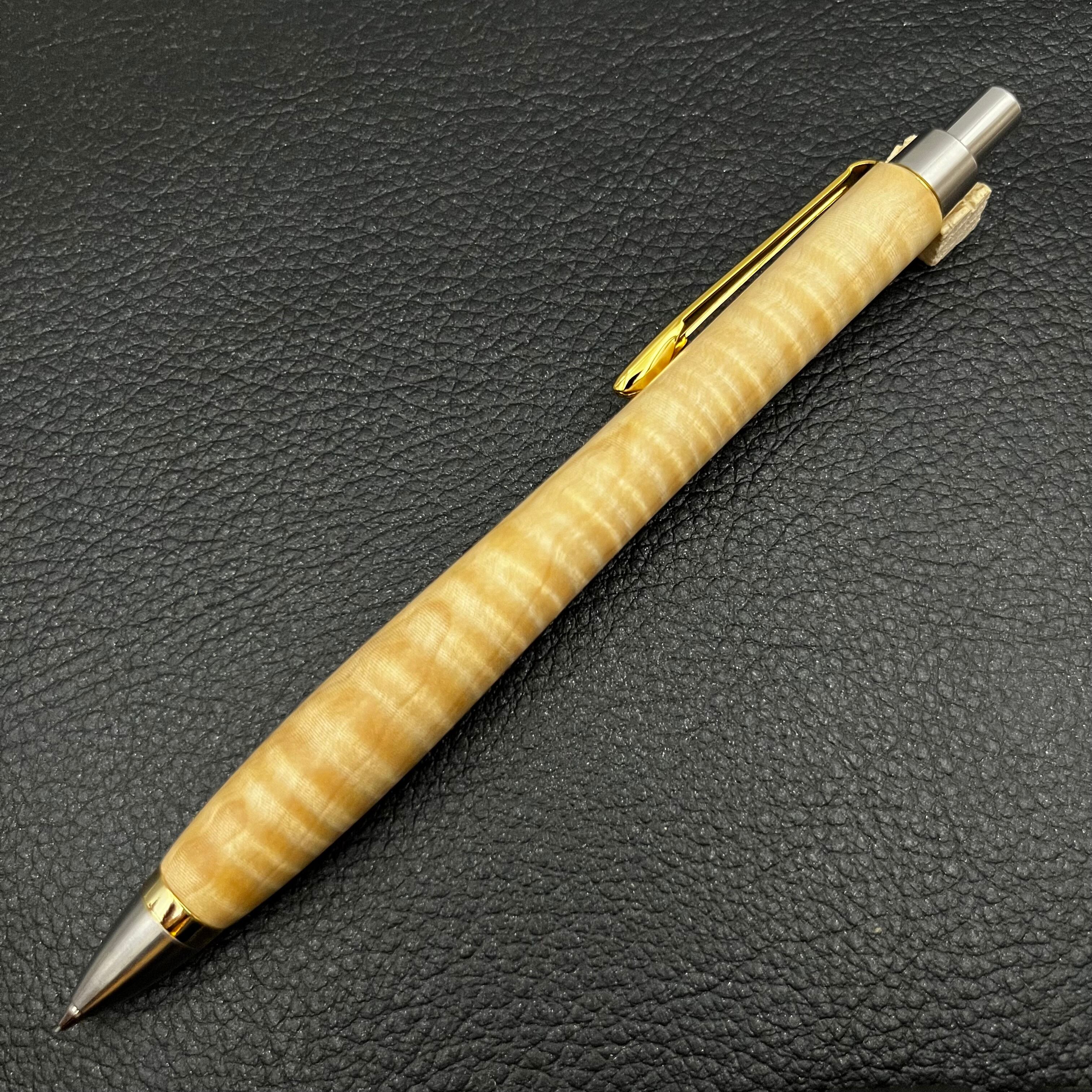 ペンシルは軸ブレが起こりにくい固定式口金を採用し、木の表情を最大限に楽しめる木軸の長さと、書き心地にこだわったバランスで金具を設計してあります。