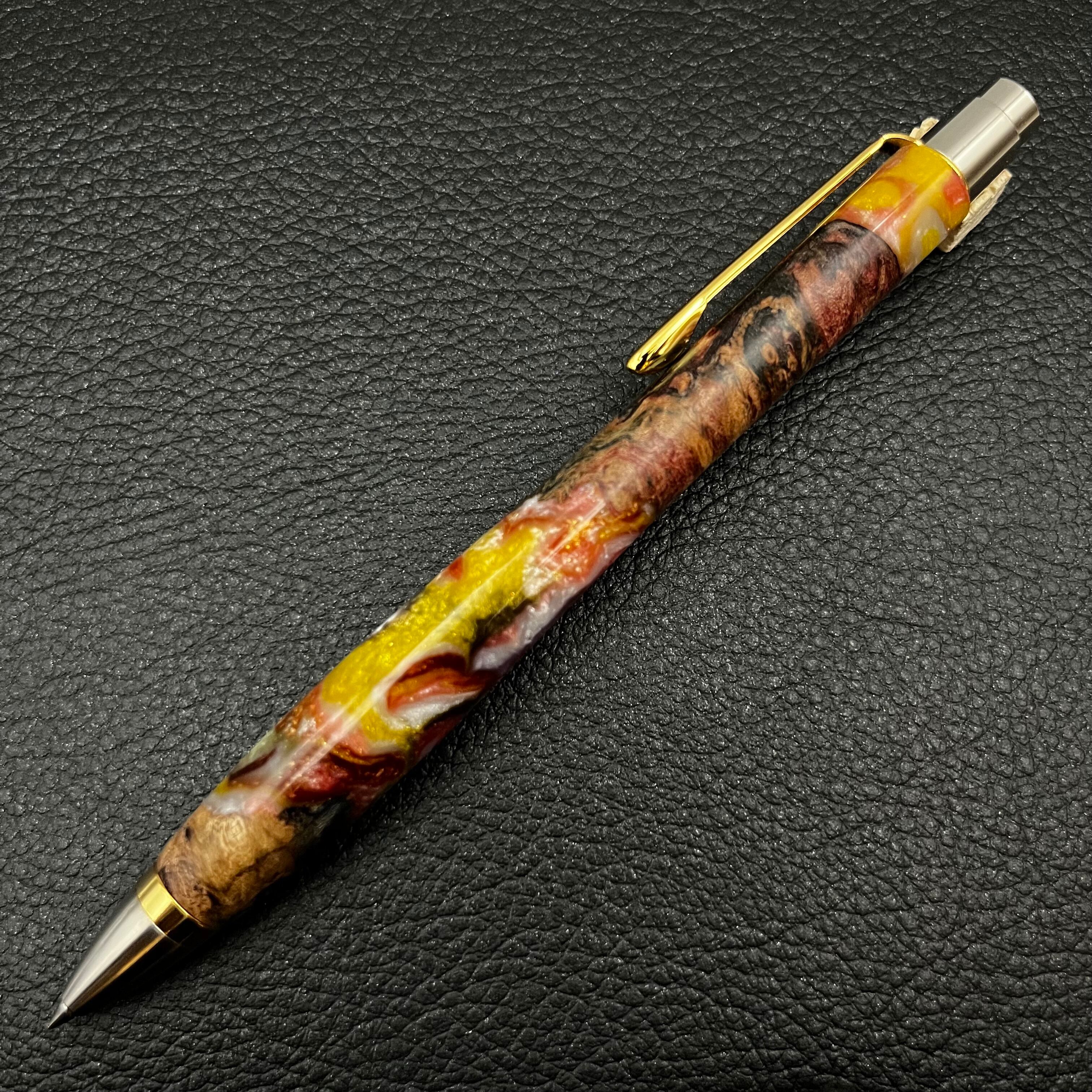 ※シンフォニアウッドとは、スタビライズドウッドに加工した木と樹脂の異なる素材を合わせることで美しい調和を目指した材料です。
