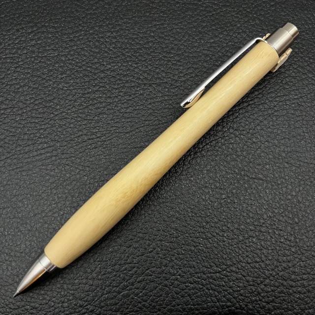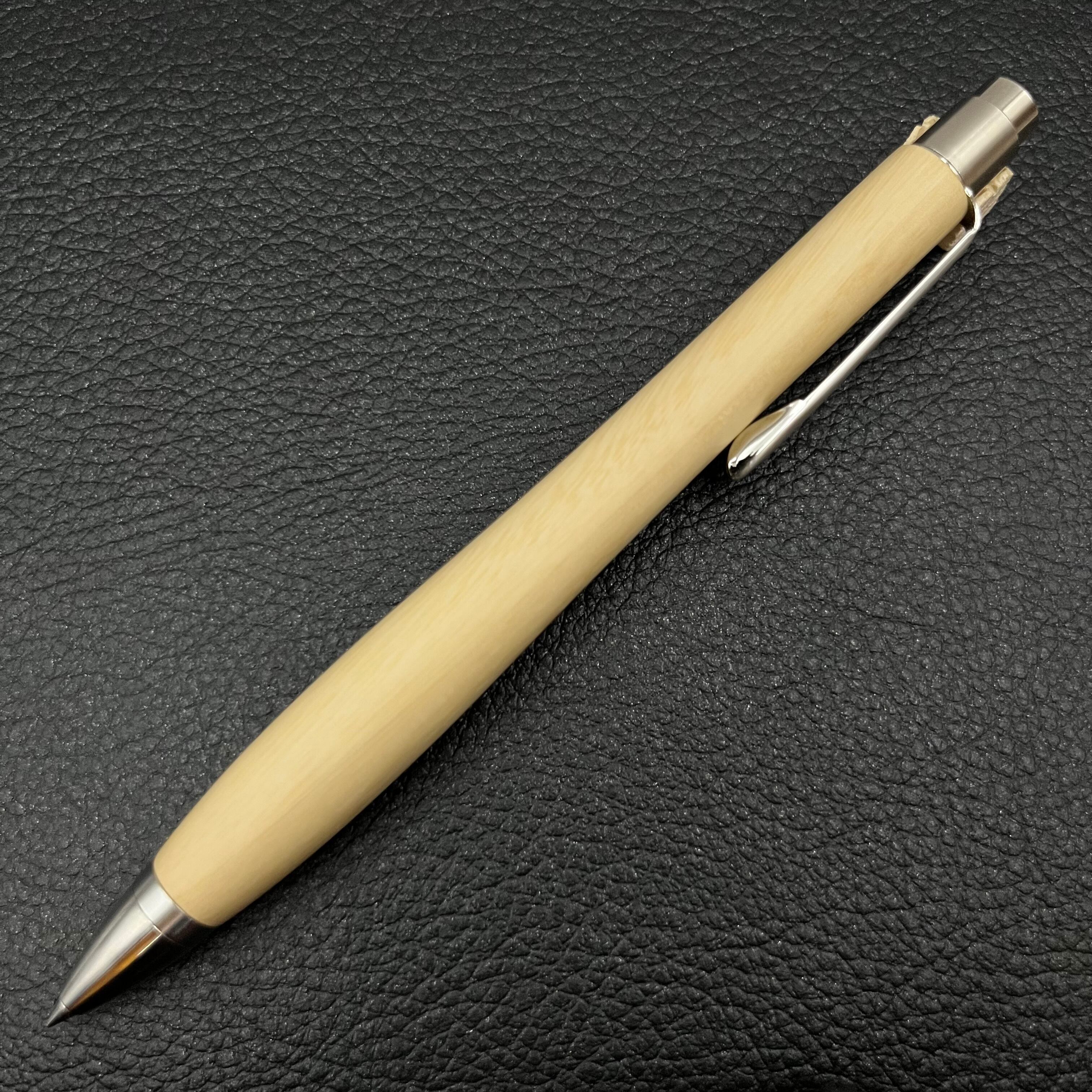 ボールペンのノックシステムは、ドイツ最高のクリックメカニズムを採用してあります。このメカニズムはユニークな機構のため、クリックしたときのカチカチ音が静かで、どんな場所でも気兼ねなく使うことができます。滑らかに動くこのプッシュ感覚を一度味わうと他には戻れなくなってしまうほどの魅力があります。 100分の1単位の加工精度で削り出されたペン先は、軸ブレも全くありません。