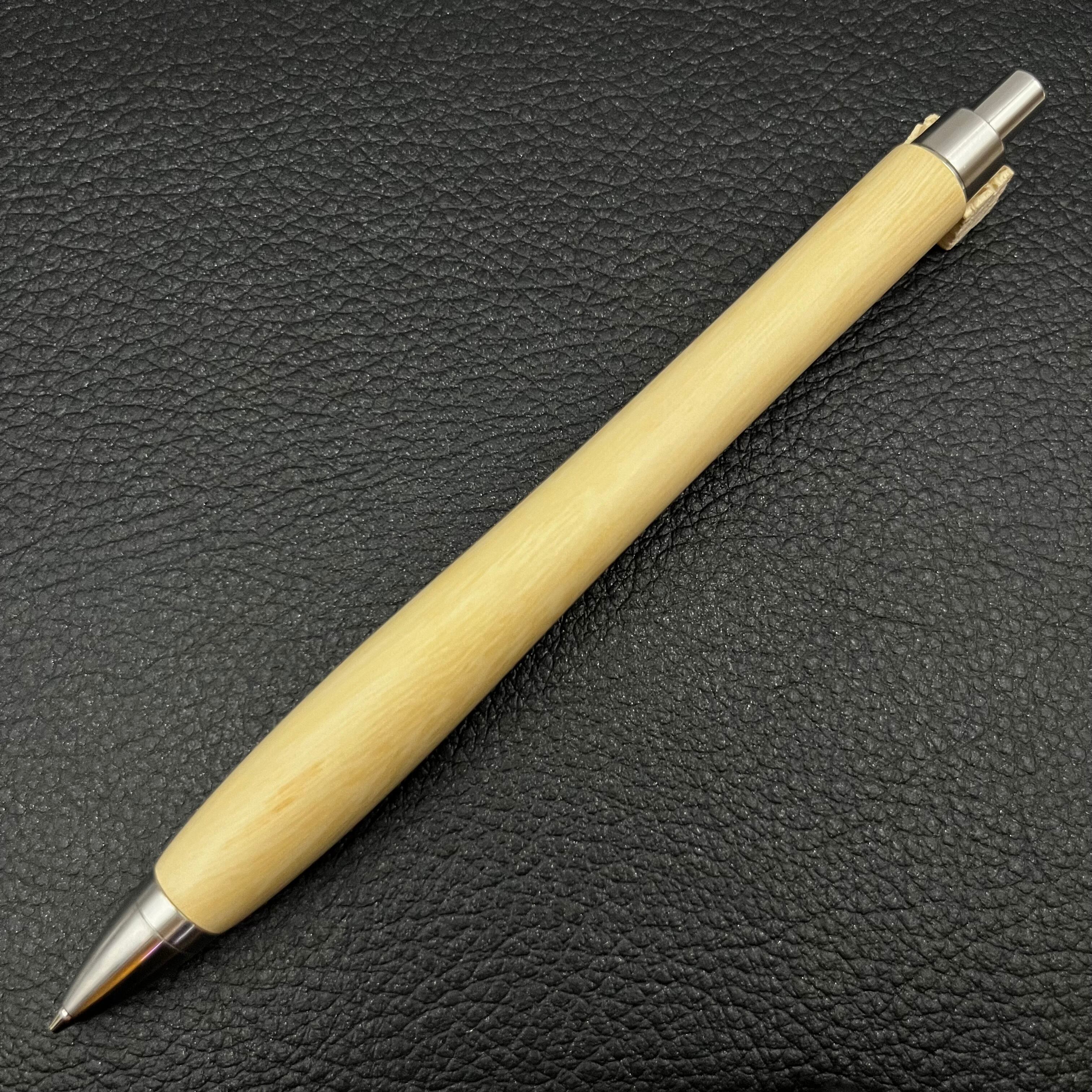 ペンシルは軸ブレが起こりにくい固定式口金を採用し、木の表情を最大限に楽しめる木軸の長さと、書き心地にこだわったバランスで金具を設計してあります。