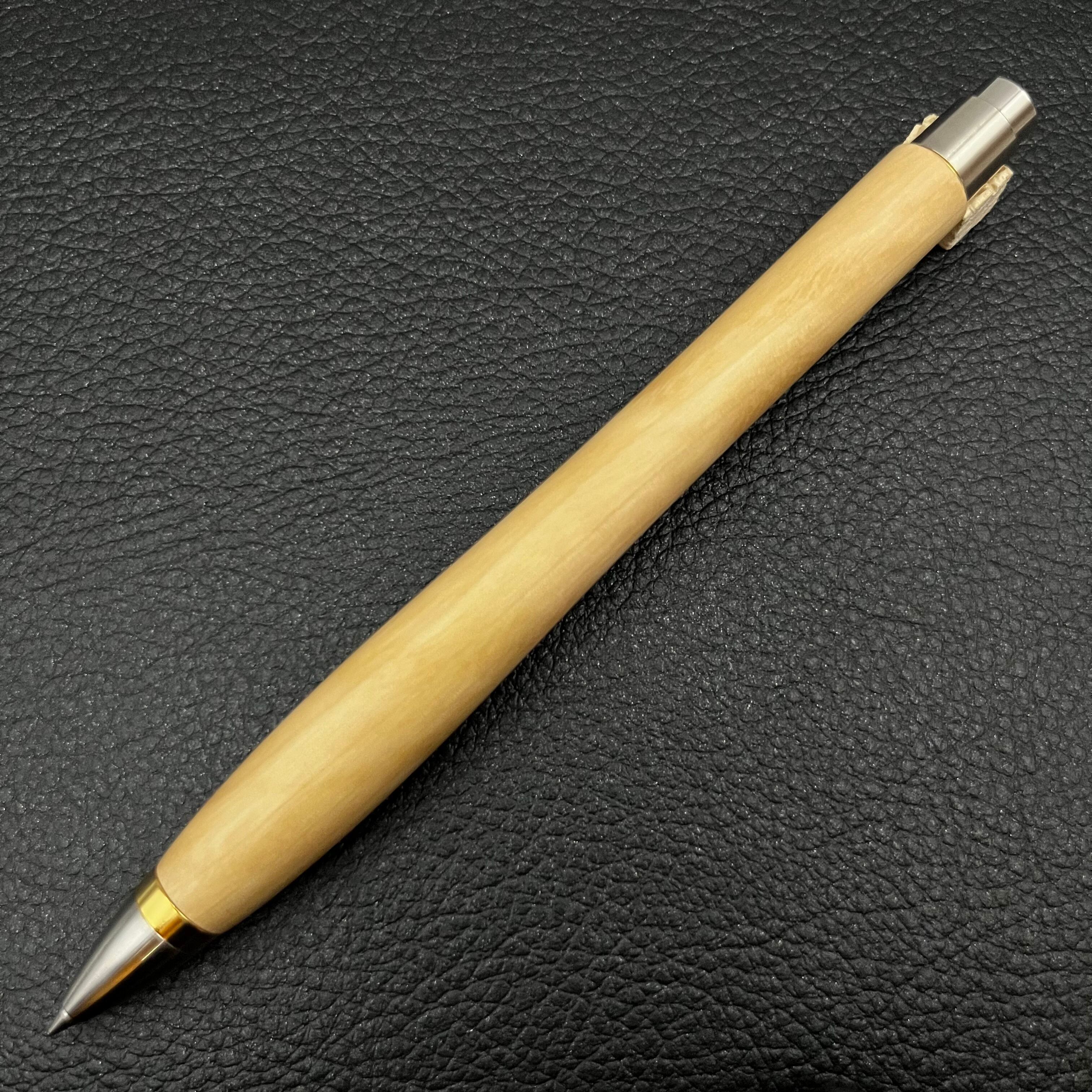 ボールペンのノックシステムは、ドイツ最高のクリックメカニズムを採用してあります。このメカニズムはユニークな機構のため、クリックしたときのカチカチ音が静かで、どんな場所でも気兼ねなく使うことができます。滑らかに動くこのプッシュ感覚を一度味わうと他には戻れなくなってしまうほどの魅力があります。 100分の1単位の加工精度で削り出されたペン先は、軸ブレも全くありません。