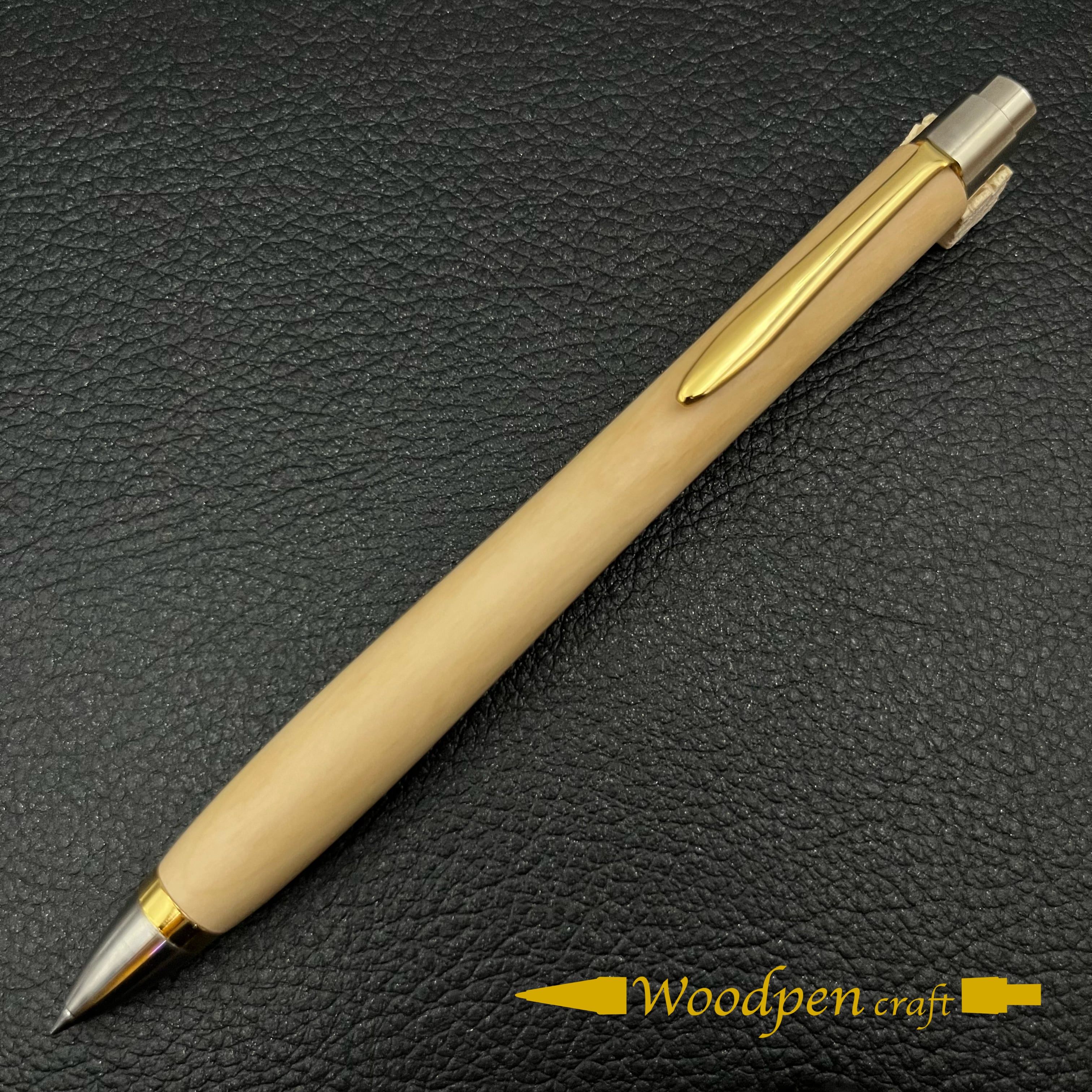 ボールペンのノックシステムは、ドイツ最高のクリックメカニズムを採用してあります。このメカニズムはユニークな機構のため、クリックしたときのカチカチ音が静かで、どんな場所でも気兼ねなく使うことができます。滑らかに動くこのプッシュ感覚を一度味わうと他には戻れなくなってしまうほどの魅力があります。 100分の1単位の加工精度で削り出されたペン先は、軸ブレも全くありません。