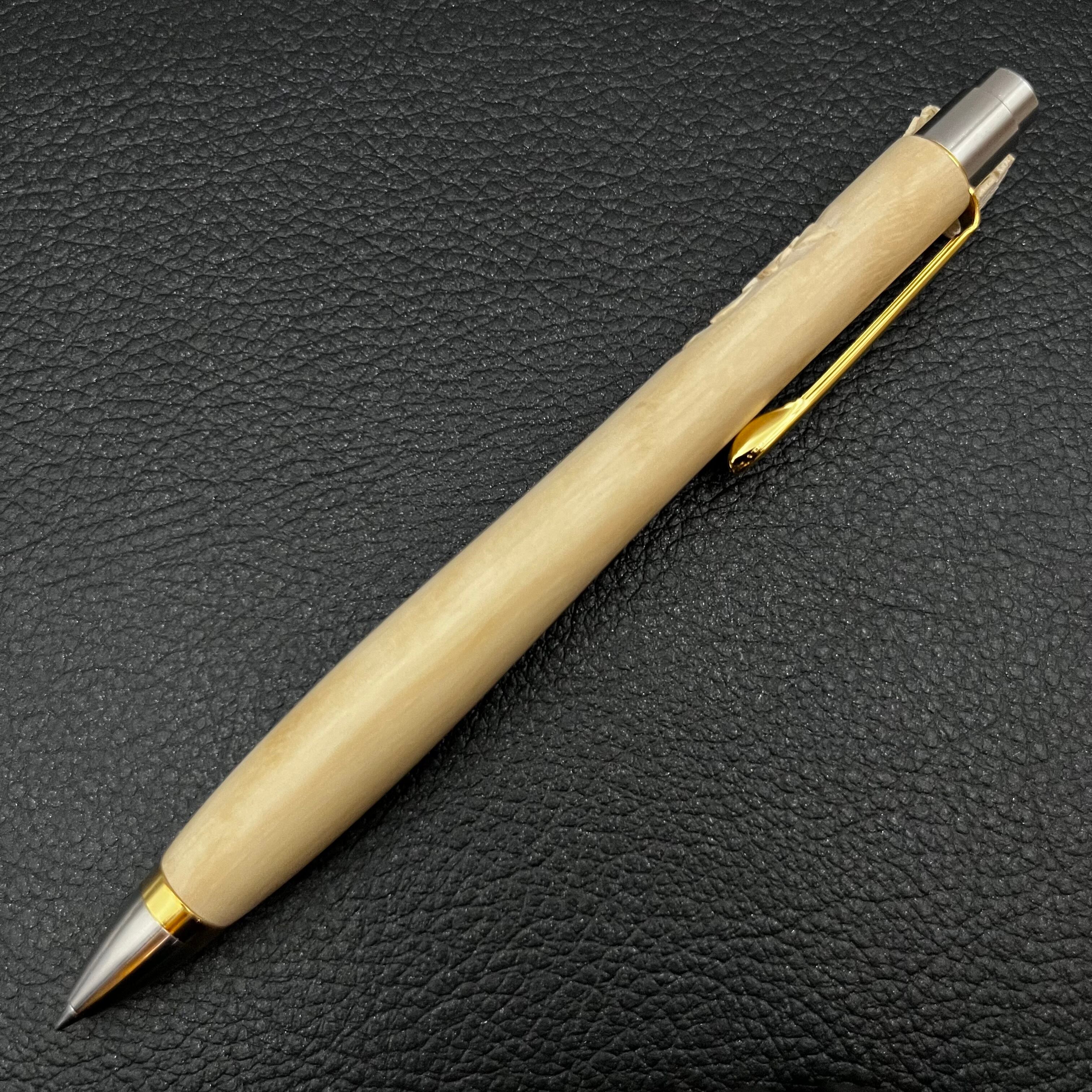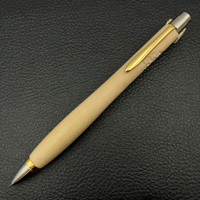 ボールペンのノックシステムは、ドイツ最高のクリックメカニズムを採用してあります。このメカニズムはユニークな機構のため、クリックしたときのカチカチ音が静かで、どんな場所でも気兼ねなく使うことができます。滑らかに動くこのプッシュ感覚を一度味わうと他には戻れなくなってしまうほどの魅力があります。 100分の1単位の加工精度で削り出されたペン先は、軸ブレも全くありません。