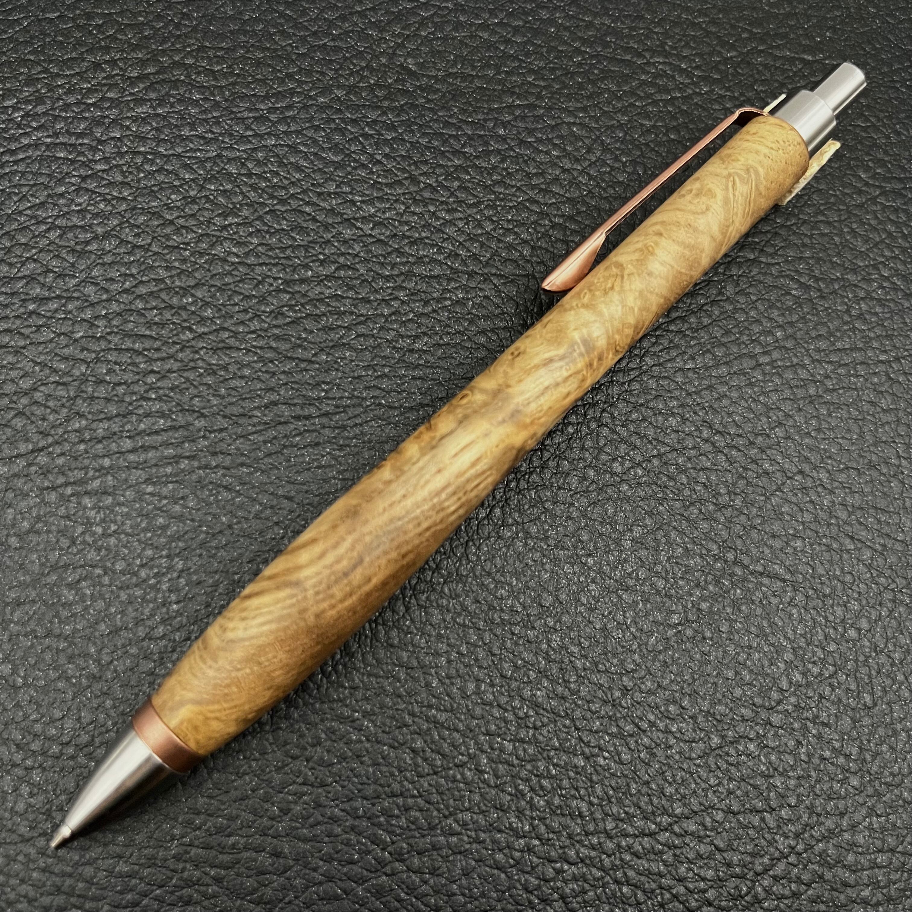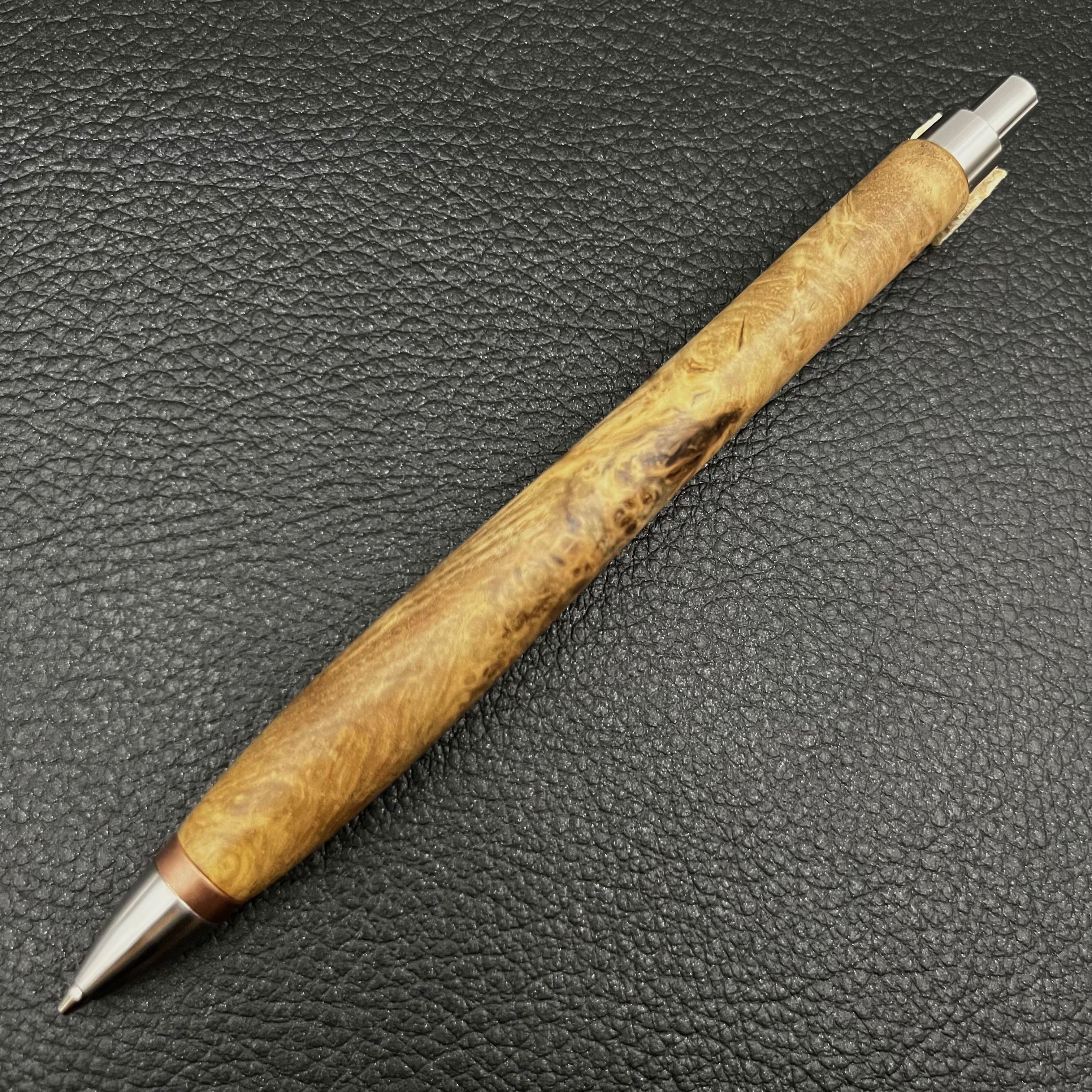 ペンシルは軸ブレが起こりにくい固定式口金を採用し、木の表情を最大限に楽しめる木軸の長さと、書き心地にこだわったバランスで金具を設計してあります。