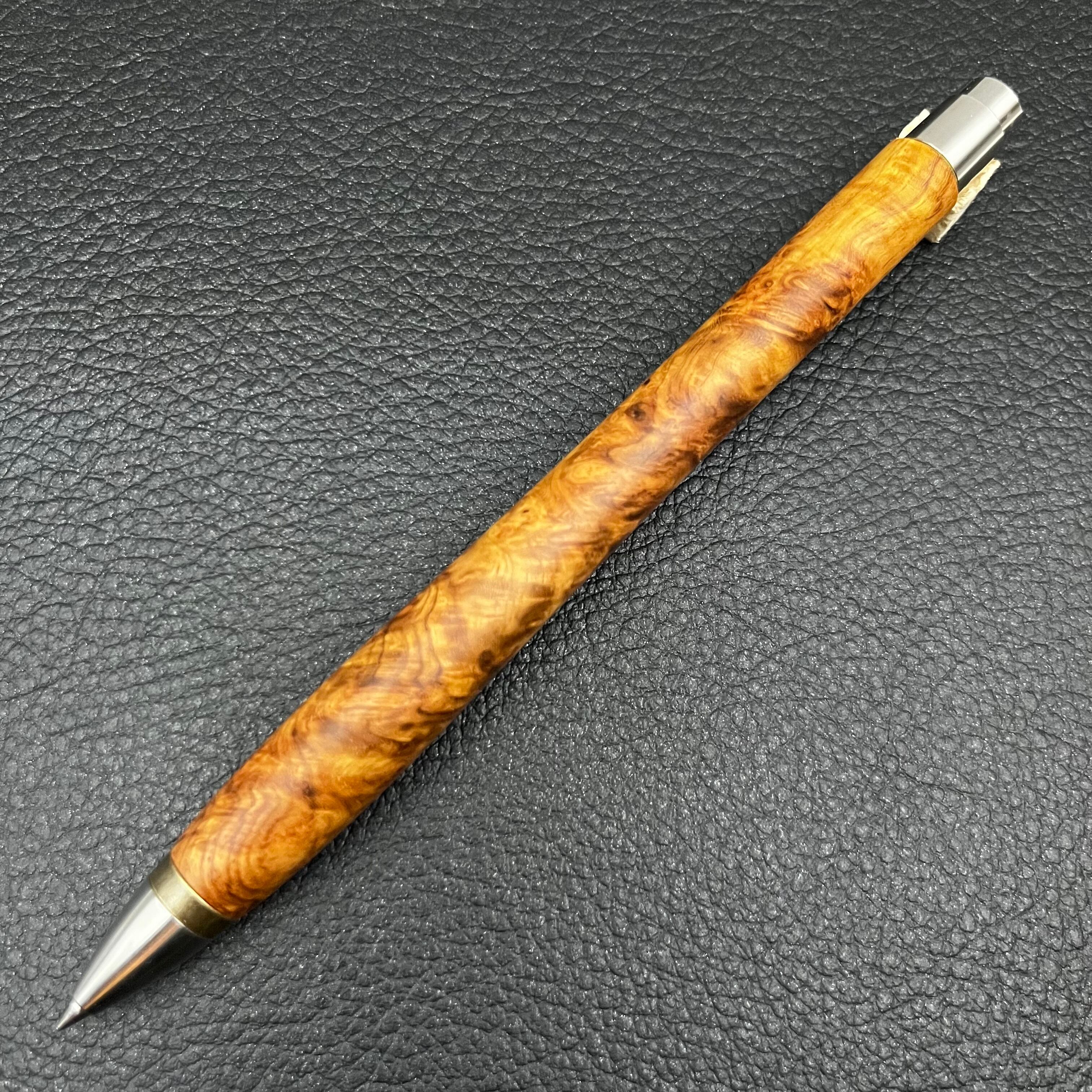 ボールペンのノックシステムは、ドイツ最高のクリックメカニズムを採用してあります。このメカニズムはユニークな機構のため、クリックしたときのカチカチ音が静かで、どんな場所でも気兼ねなく使うことができます。滑らかに動くこのプッシュ感覚を一度味わうと他には戻れなくなってしまうほどの魅力があります。 100分の1単位の加工精度で削り出されたペン先は、軸ブレも全くありません。