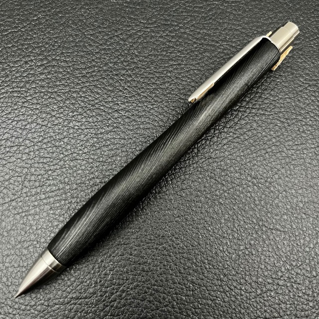 ボールペンのノックシステムは、ドイツ最高のクリックメカニズムを採用してあります。このメカニズムはユニークな機構のため、クリックしたときのカチカチ音が静かで、どんな場所でも気兼ねなく使うことができます。滑らかに動くこのプッシュ感覚を一度味わうと他には戻れなくなってしまうほどの魅力があります。 100分の1単位の加工精度で削り出されたペン先は、軸ブレも全くありません。