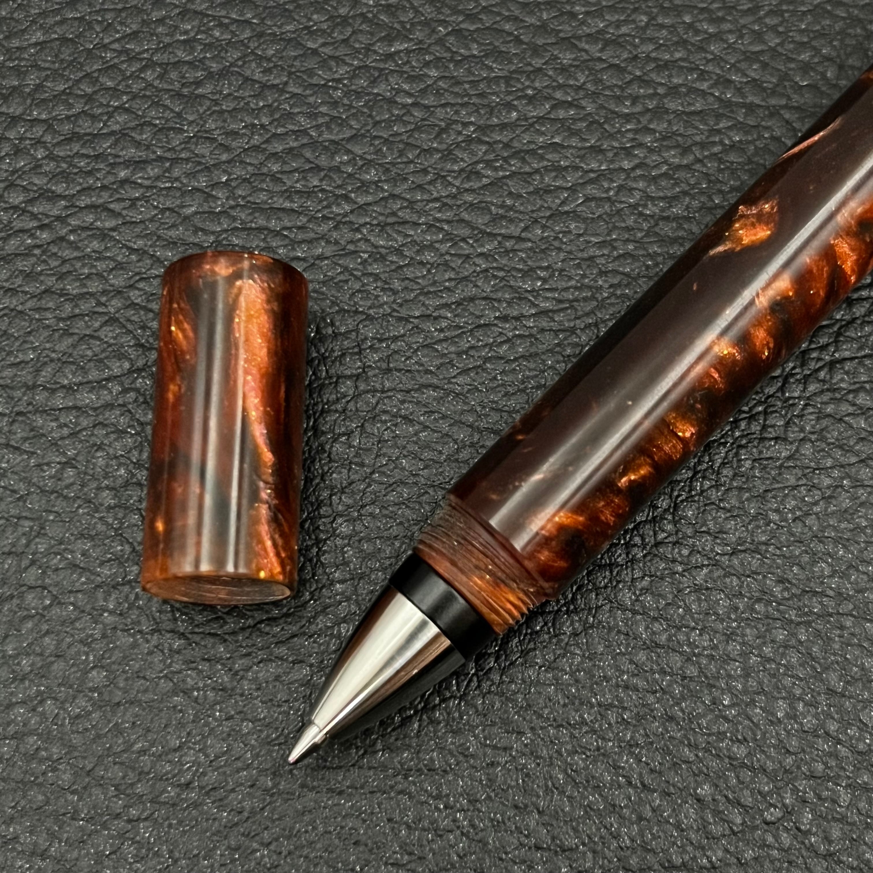 金具職人さんが万年筆「粋」の制作で得た樹脂加工の技術と知識を活かして制作したこだわりの1本です。オリジナルアクリル透明ペン置きもセットになっています。