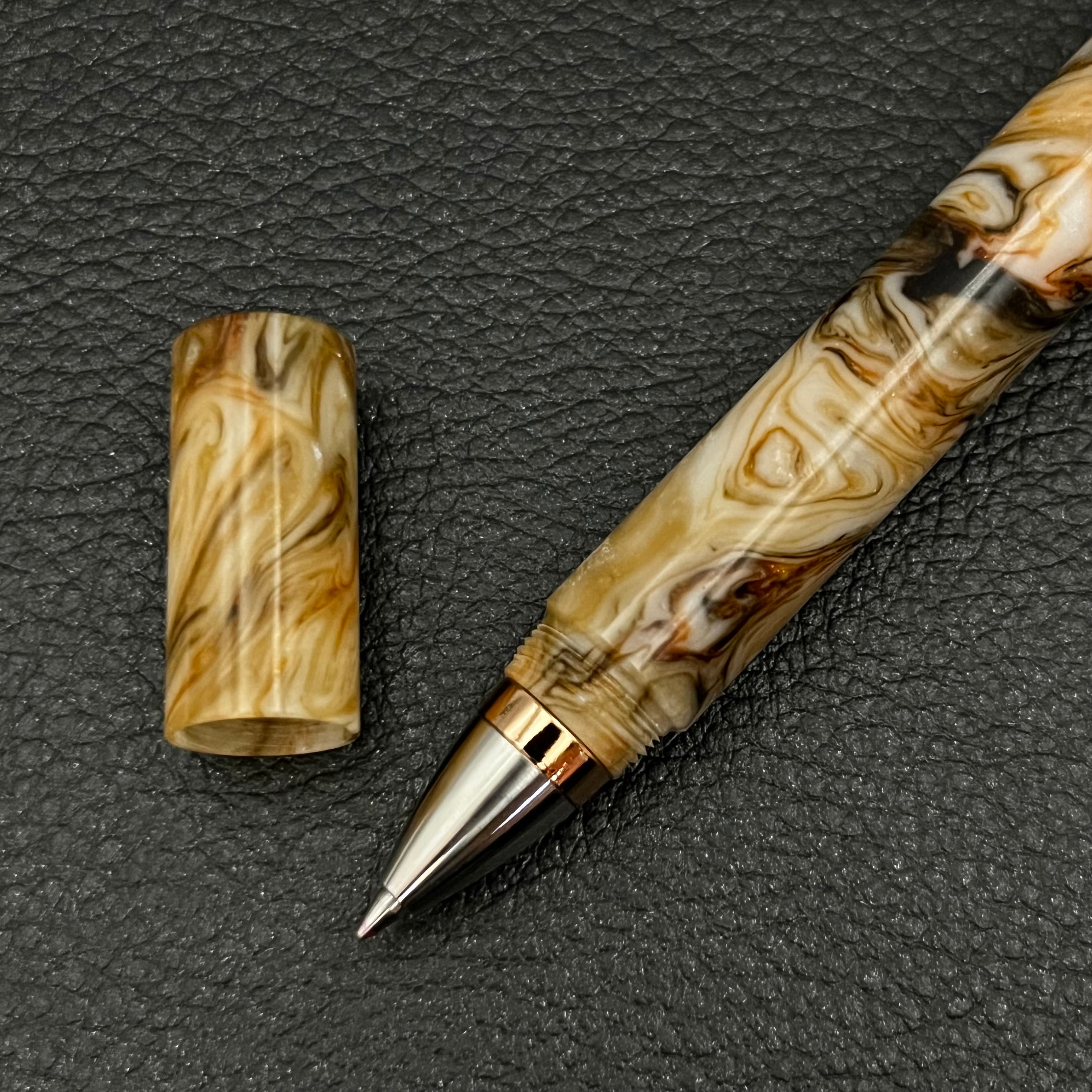 ①シンプルなデザインとキャップ式構造で樹脂の美しさを最大限引き出しています。