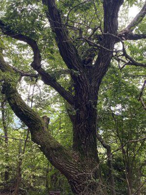 細長い楕円型で、帽子がウロコ模様の1年成どんぐりがなる樹