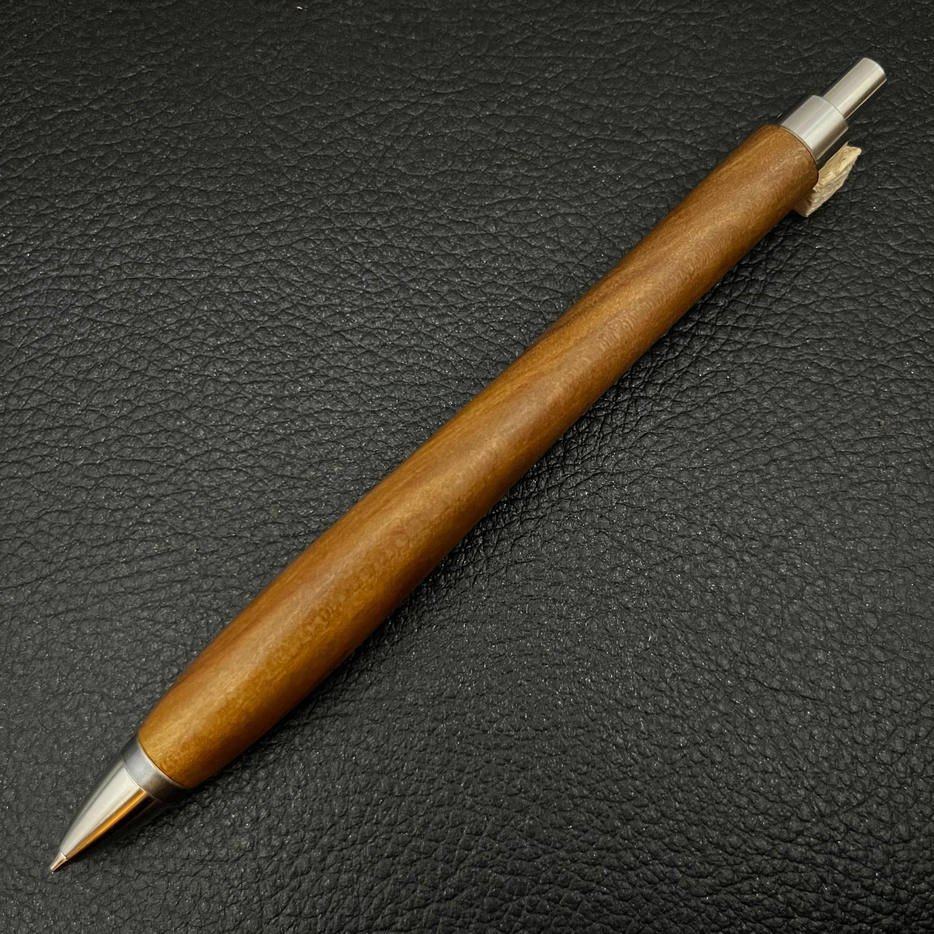 ペンシルは軸ブレが起こりにくい固定式口金を採用し、木の表情を最大限に楽しめる木軸の長さと、書き心地にこだわったバランスで金具を設計してあります。