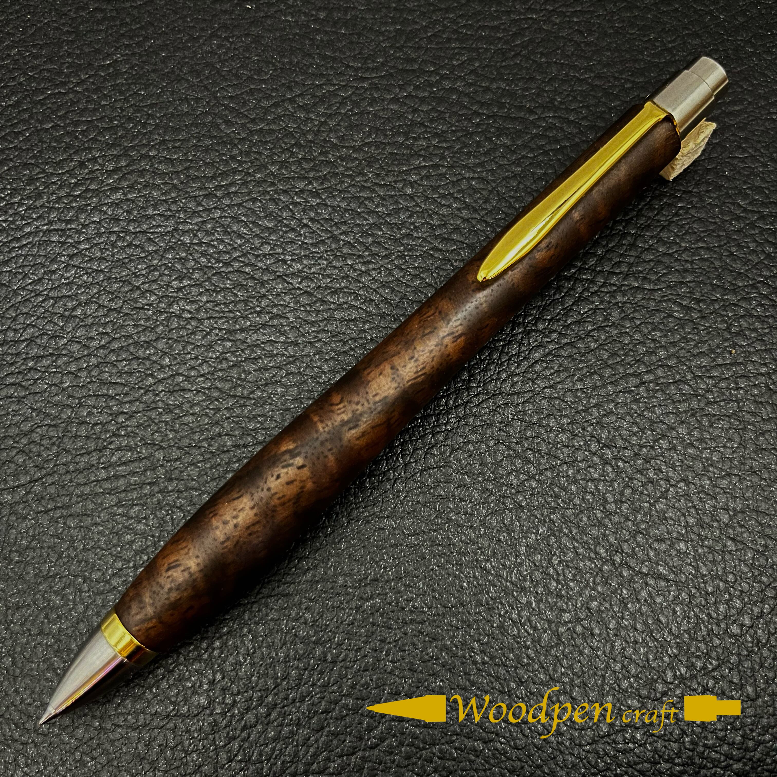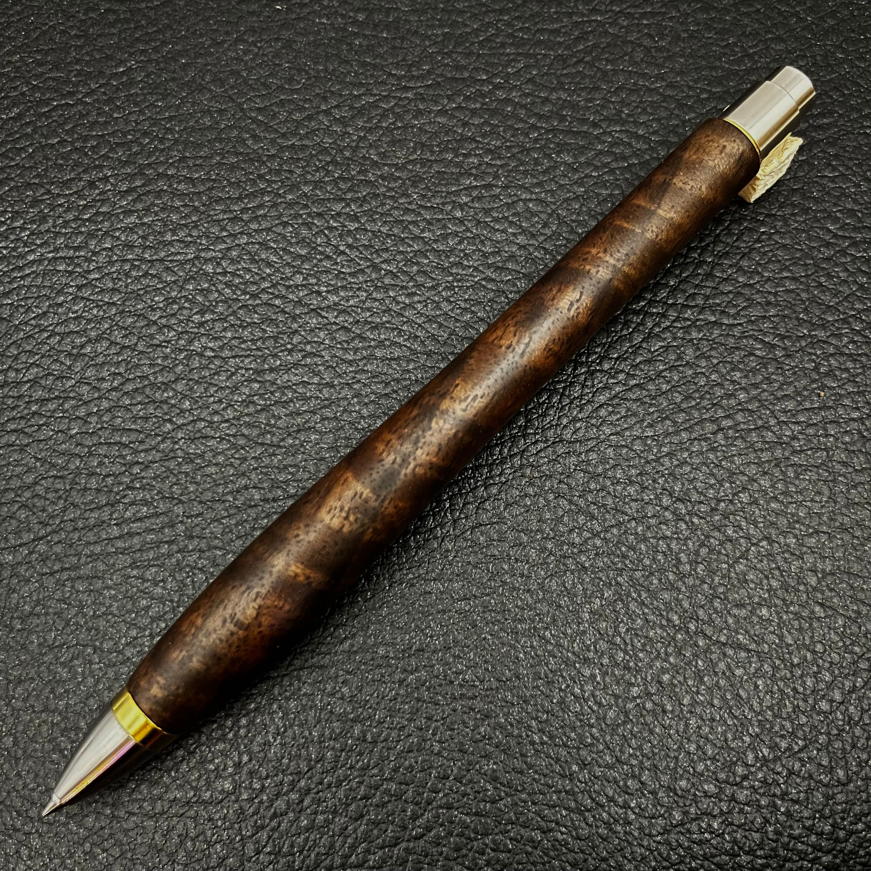 ボールペンのノックシステムは、ドイツ最高のクリックメカニズムを採用してあります。このメカニズムはユニークな機構のため、クリックしたときのカチカチ音が静かで、どんな場所でも気兼ねなく使うことができます。滑らかに動くこのプッシュ感覚を一度味わうと他には戻れなくなってしまうほどの魅力があります。 100分の1単位の加工精度で削り出されたペン先は、軸ブレも全くありません。