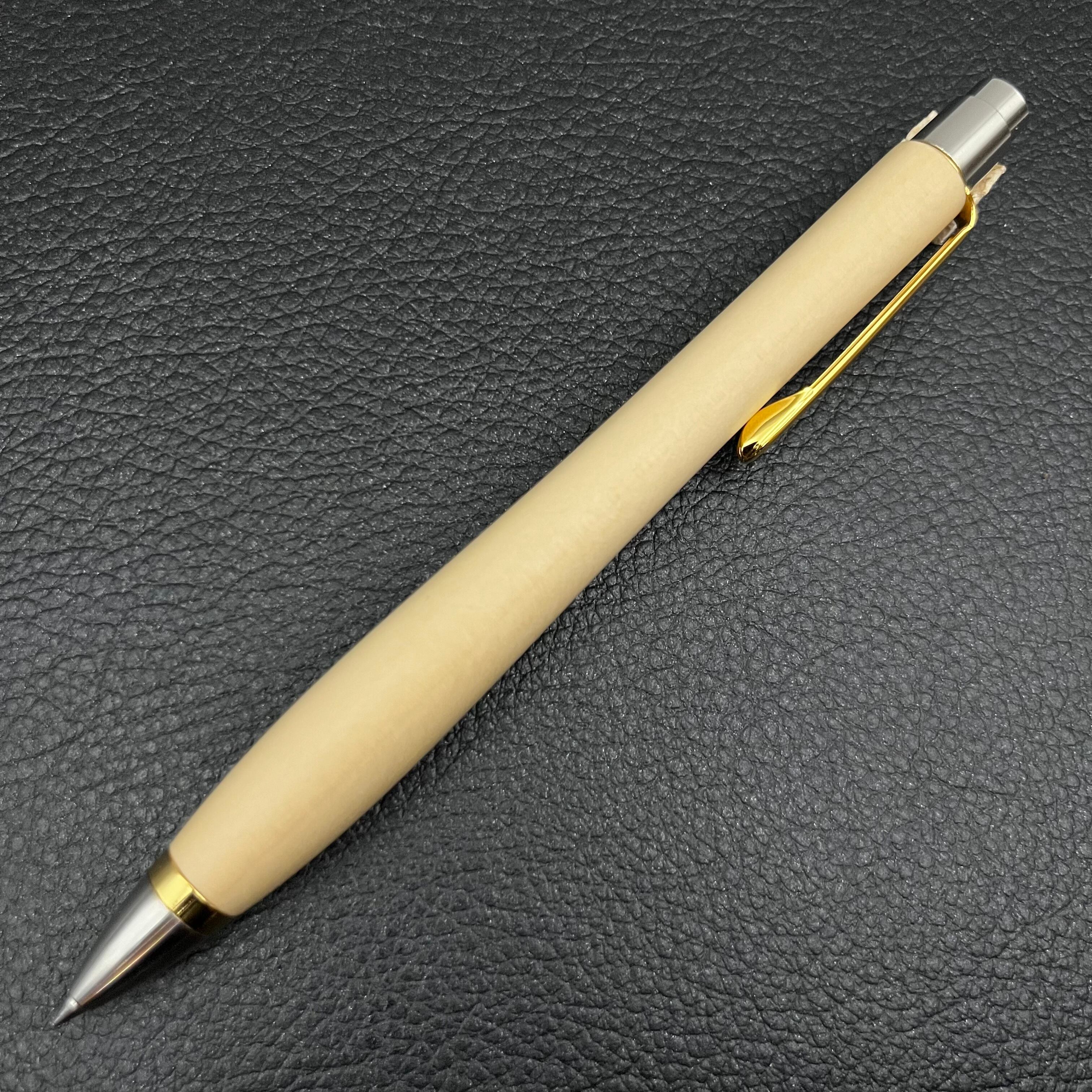 ボールペンのノックシステムは、ドイツ最高のクリックメカニズムを採用してあります。このメカニズムはユニークな機構のため、クリックしたときのカチカチ音が静かで、どんな場所でも気兼ねなく使うことができます。滑らかに動くこのプッシュ感覚を一度味わうと他には戻れなくなってしまうほどの魅力があります。 100分の1単位の加工精度で削り出されたペン先は、軸ブレも全くありません。